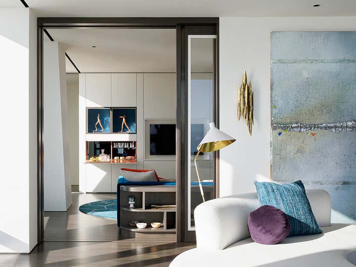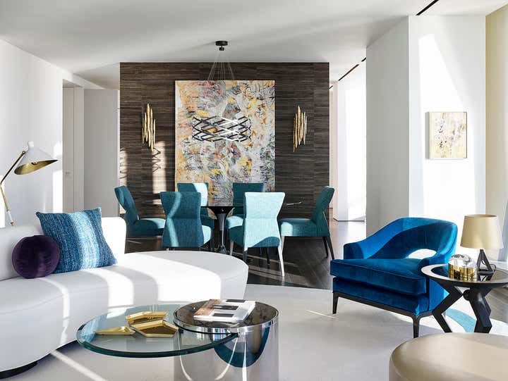 Opening into a contemporary oasis spanning 3,256 square feet, the residence became an artistic counterpoint to the building s angular architecture. Soft lines, vibrant color accents, and opulent fabrics intermingle to infuse a sense of romanticism and balance—simply transcending the ordinary.