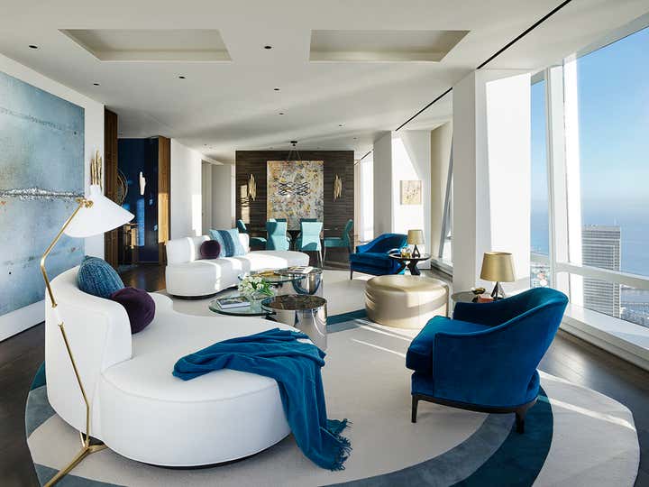 KWD takes center stage in transforming the interiors of the half-floor penthouse, perched 700 feet above the vibrant streets of San Francisco. Nestled inside the tallest mixed-use tower west of the Mississippi, this sky-high home gives way to artful interiors that honor the sprawling views at every opportunity.
