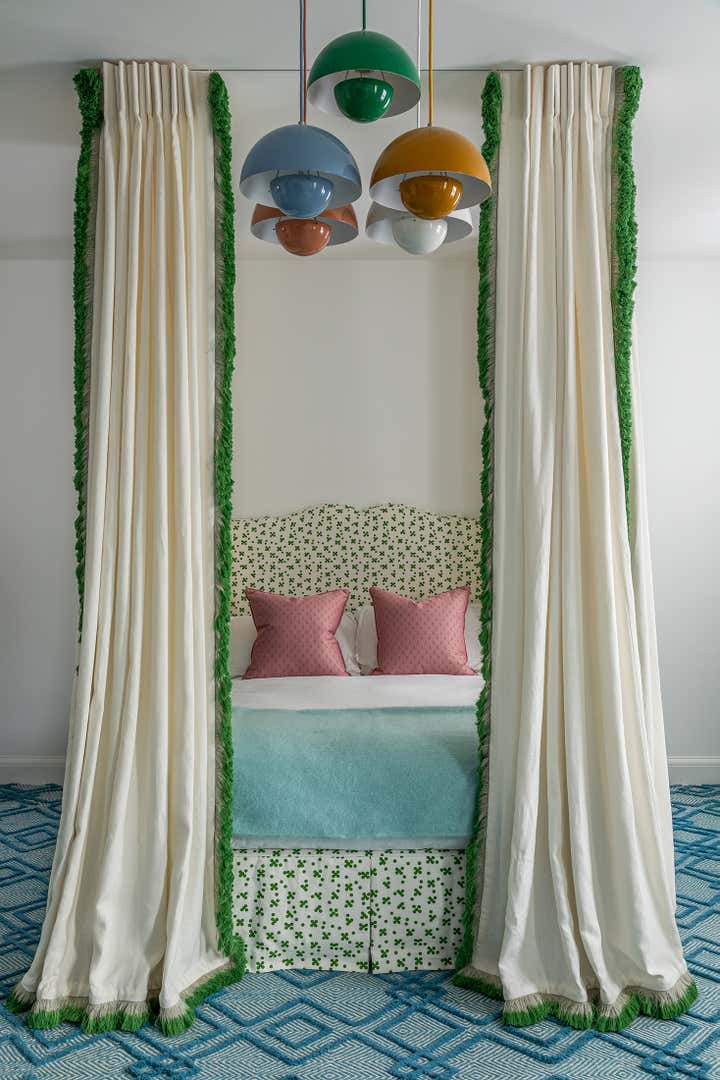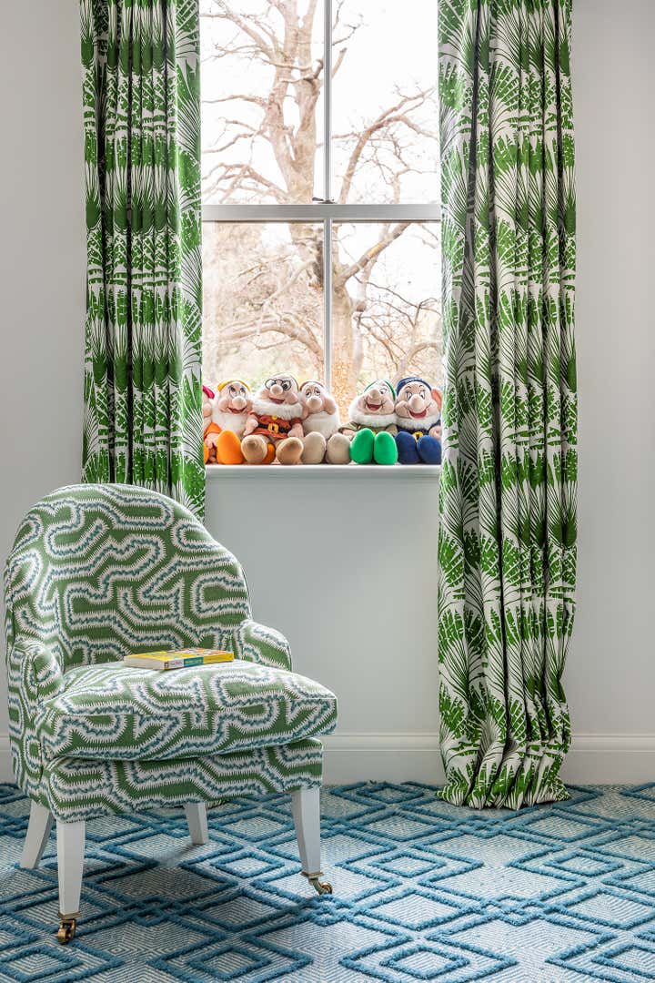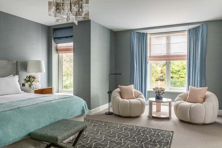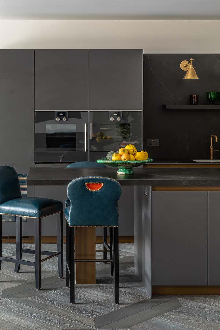 The challenge here was to turn a rather bleak, half built ‘new build’ in South West London into an elegant family house. Working closely with architects Holden Harper we opened up spaces and walls to let light in from top to bottom, with the addition of a beautifully elegant sweeping staircase at the core of the house. A neutral colour palette is interspersed with rich jewel colours to create ebb and flow throughout.