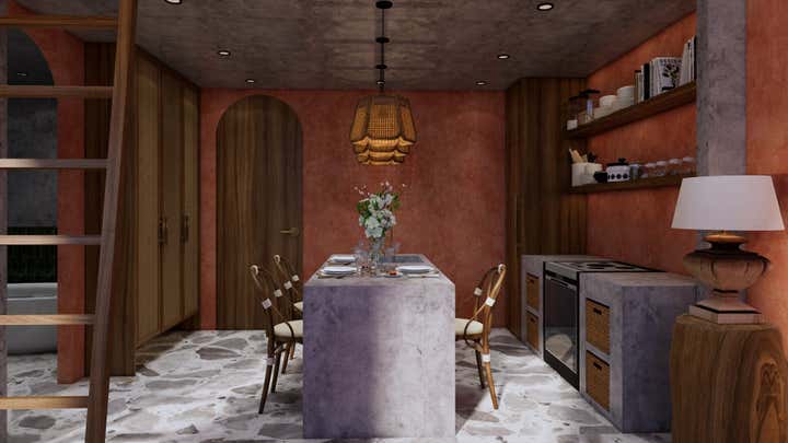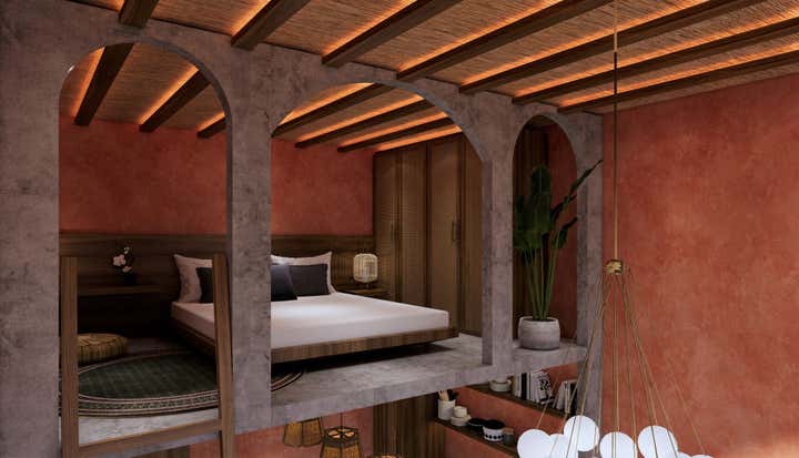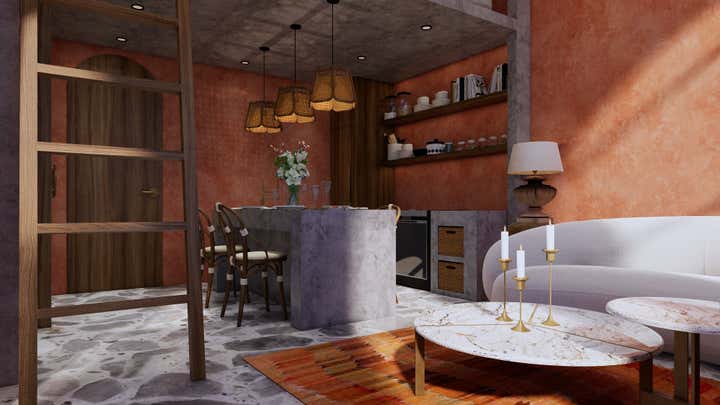 The project was inspired by a brief analysis of the client and the project. Boldly use Terracotta as the main color of the project and extensive use of original materials to create a relaxed, natural, vibrant, sunny, and artistic space concept.