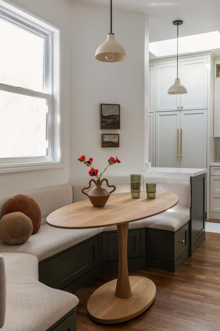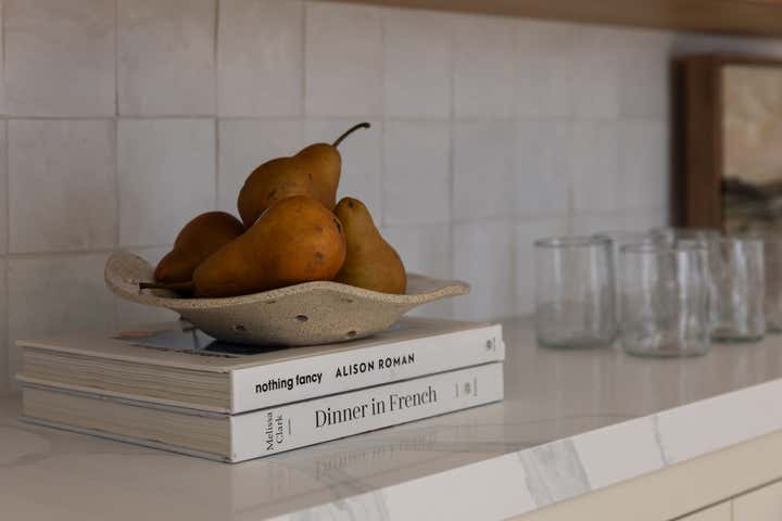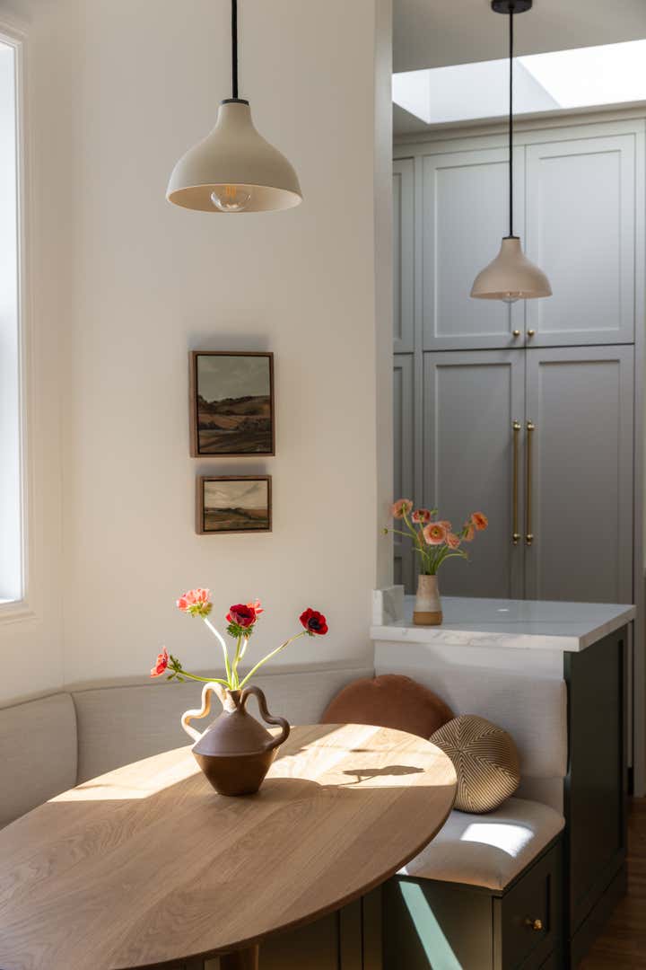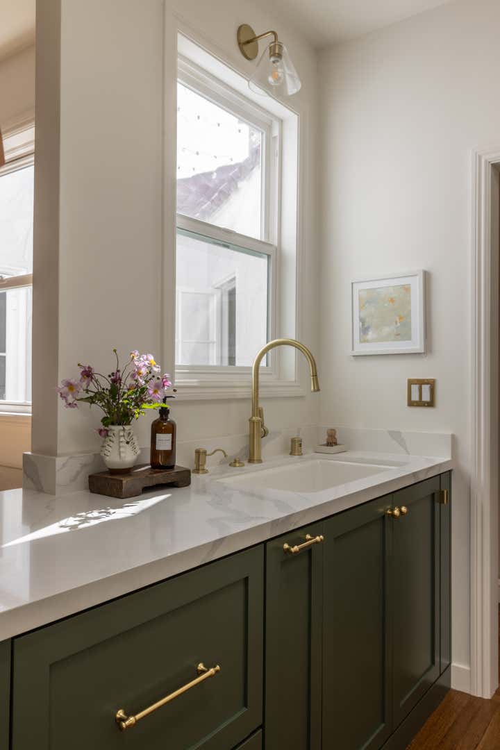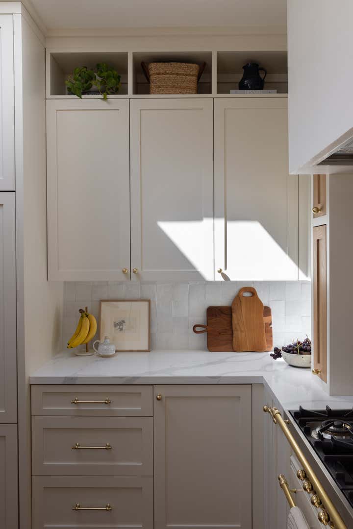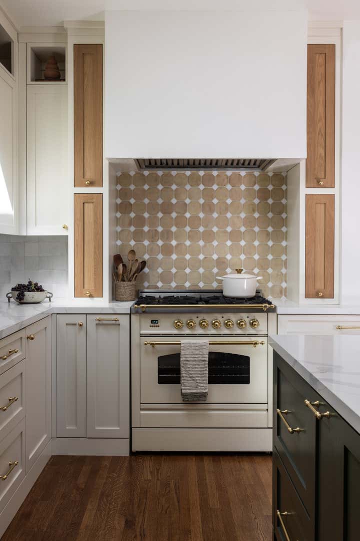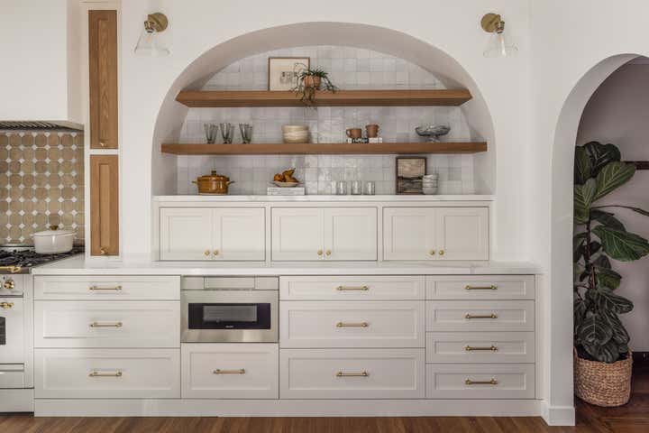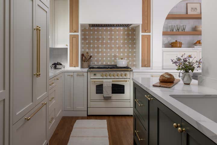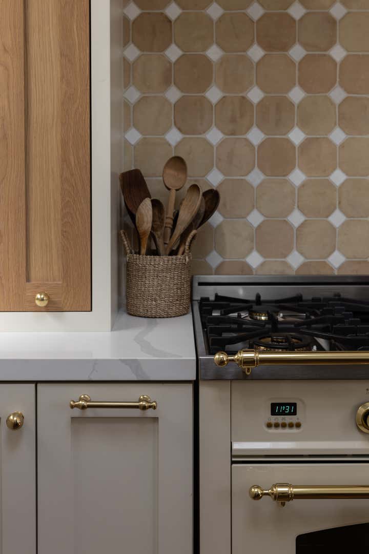 We made sure to include some material choices that pay homage to the Spanish style of the home, including unglazed octagon terracotta clay tiles behind the stove. We also introduced an arched doorway leading from the kitchen to the dining room, mimicking the arches used in the rest of the home.