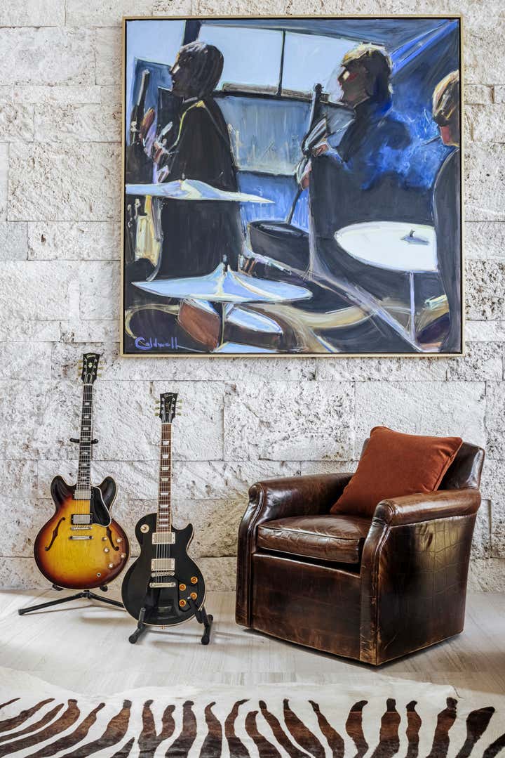 One of the biggest design challenges was building and designing the client’s recording studio, which required full collaboration between various consultants, to ensure a unique and integrated environment. To honor the surrounding terrain, Strang designed the home around the existing oak trees, which makes it feel both timeless and one with nature.