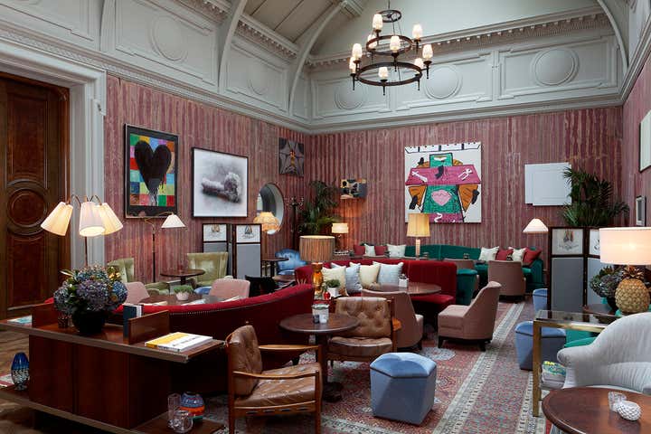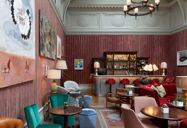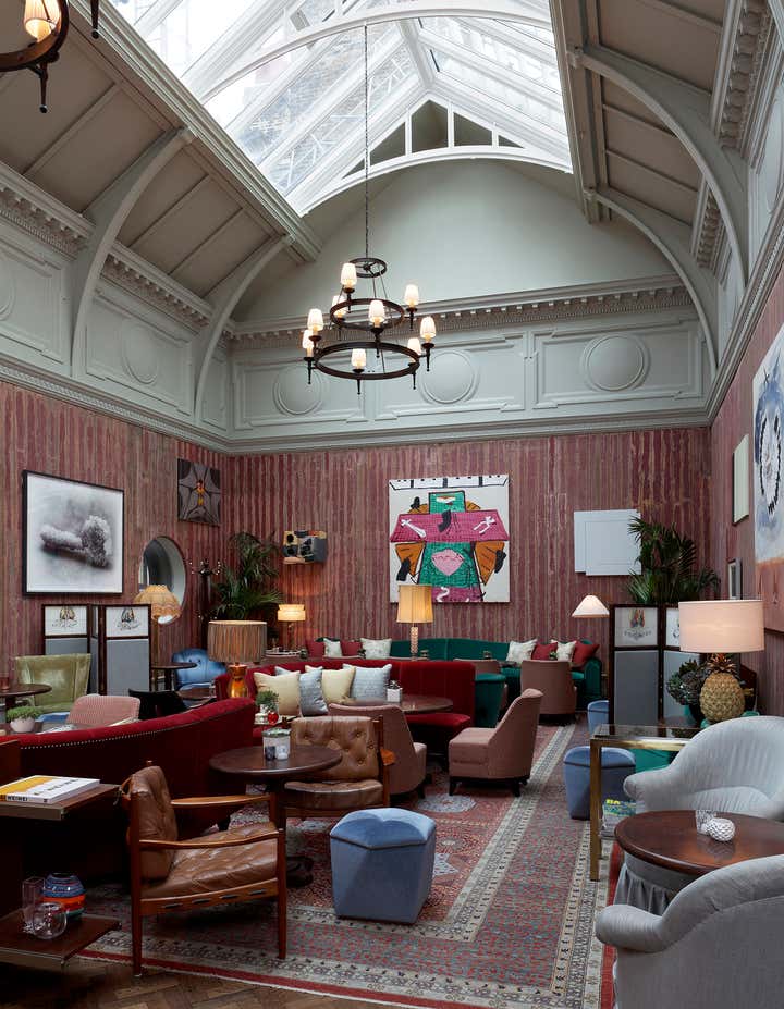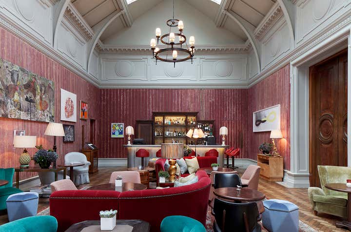 Located in the eastern wing of the Royal Academy of Arts’ historic Burlington House building, The Academicians’ Room utilises the impressive space originally designed by Norman Shaw RA in 1883. Revolving around the idea of a drawing room, the member’s only space acts as a meeting point for likeminded creatives, with a sociable yet serene environment as eclectic and varied as the characters who inhabit it. Working with the grandiose architectural detailing and layering in a selection of vintage and bespoke furnishings, a haute-bohemian multifunctional space was created, capable of transitioning from day to night seamlessly.