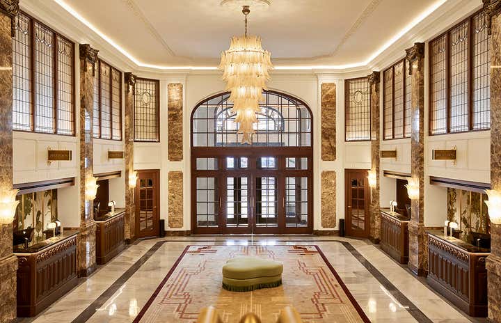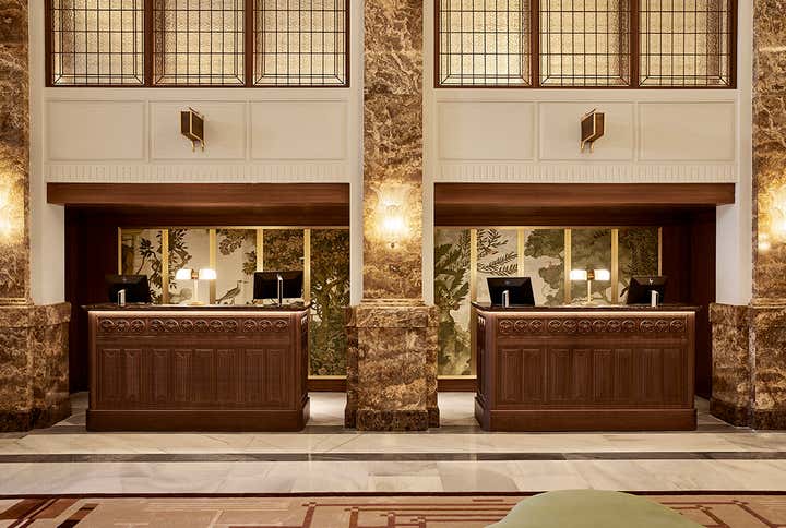 The renovation restored its magic and glamour, combining history with contemporary elegance. The lobby leads to the Rotunda and Central Bar, where Art Deco furnishings, luxurious textiles, and handcrafted Baroque lamps merge to create immersive, elegant atmospheres.