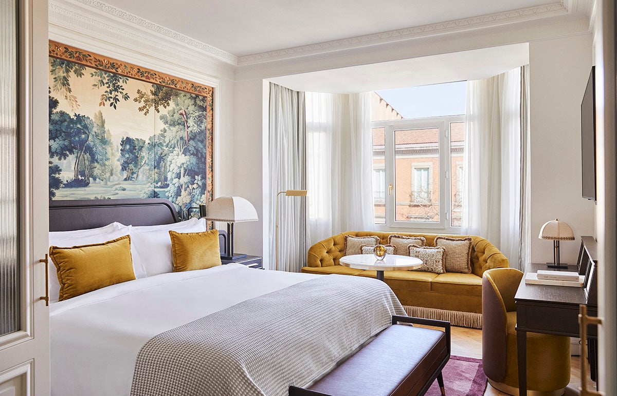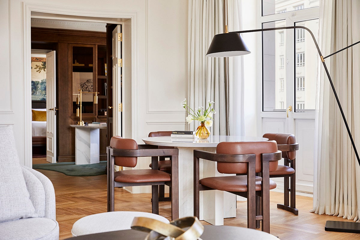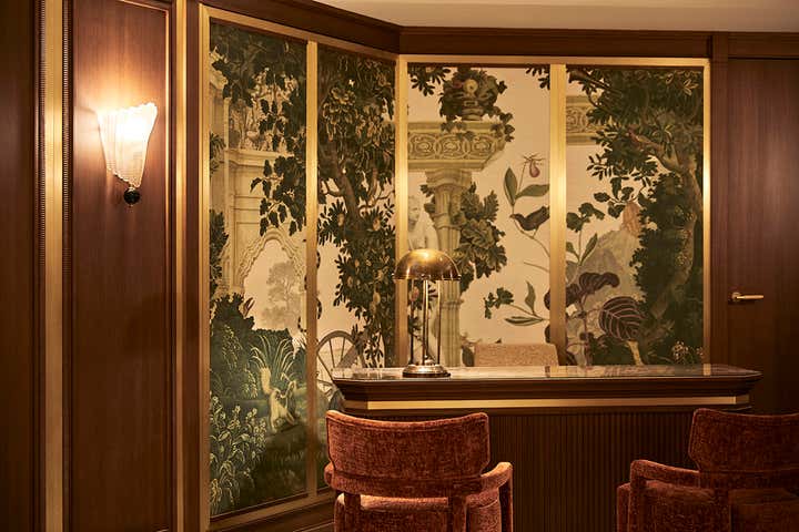 Club 27 preserves historical illustrations, while guest rooms, with Versailles-style parquet, moldings, and botanical wallpapers, evoke Madrid’s landscape and artistic spirit, offering a poetic, warm, and luxurious experience that celebrates the hotel’s heritage.