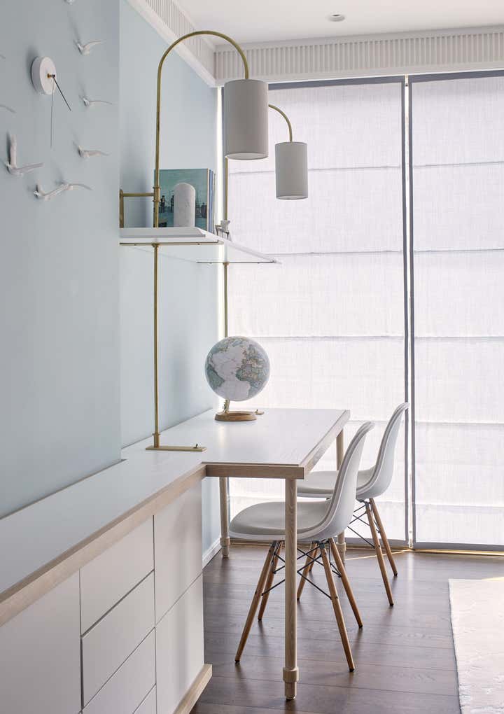 The main request was to segregate space and break an open plan layout into cosy zones where the client who is in finance and his wife - a yoga teacher could feel equally comfortable. For him it was crucial to have a study space with a home library whereas for her it was important to have a comfortable kitchen as well as light and airy space for yoga practice.