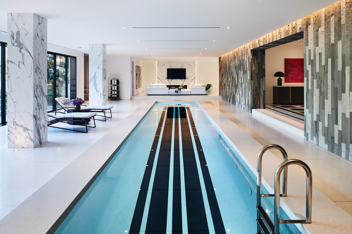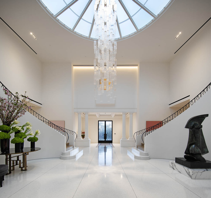 Three Hundred Thirty, a 32,000 square foot home reimagined as a modern Palladian Villa. Complete with terrazzo floors, entertainers bar, indoor pool/spa, spa baths and a 3,400 bottle lucite wine and champagne cellar.