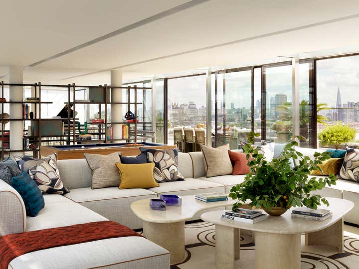 An art deco legacy meets contemporary vibrancy in a re-energised London landmark. This statement apartment in the reimagined Battersea Power Station honours the building’s history while aligning with the spirit of a contemporary capital city. The unexpected juxtaposition of eclectic pieces and materials creates visual and tactile interest in every room. The original wood panelling is the inspiration for richly textured walls. Luxurious upholstery graces a curated collection of new and vintage furniture. And, the heritage colour palette offers authenticity as well as a surprisingly fresh backdrop for contemporary works of art and craft.