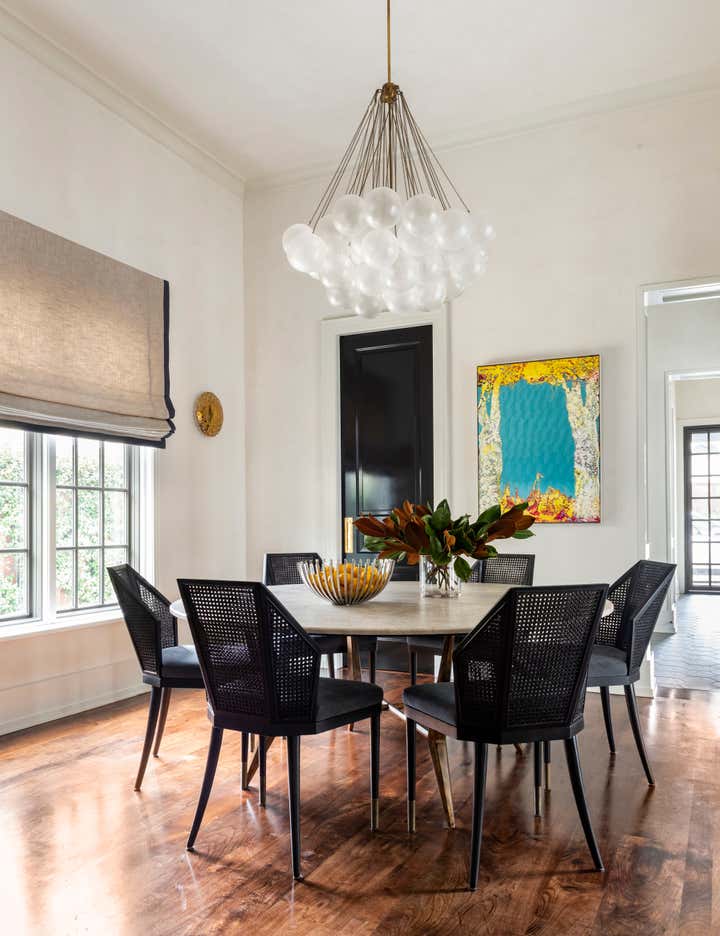 The inspiration for this 2019 River Oaks renovation was a chic London townhouse. The thoughtful combination of luxurious fabrics and fine furnishings evokes timeless elegance and glamour. Each room was tailored to express high style and the unique taste of the client. Chandos employed a sophisticated, neutral color palette that emphasizes the art collection and the bespoke details that further styled the home.