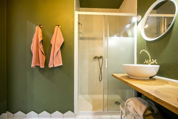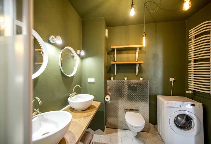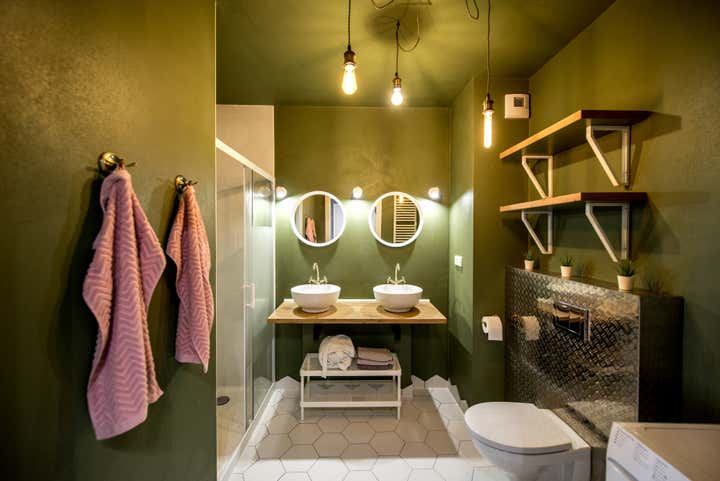 The home is fun and loud. I can see myself enjoying the space everyday. The best part of the home is the bathroom. The green gives lots of shape and style. The space is like a midcentury modern bathroom. The kitchen is very updated. Even tough it s not the biggest kitchen it still has lots of cabinets and space to move around. And the living is just super cozy and airy.