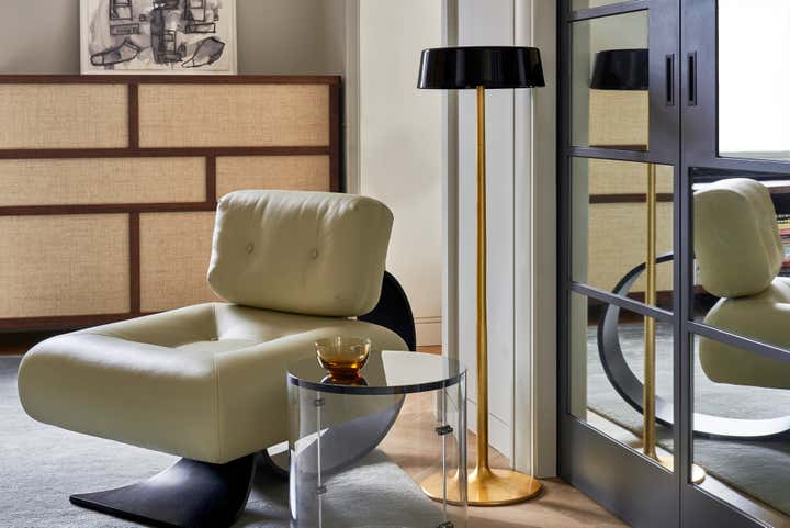 The owners of this apartment in a converted Tribeca warehouse wanted to take a connoisseur s approach to the selection of furniture and lighting to complement their collection of bold artwork. The custom dining table is surrounded by iconic teak-and-cane chairs by Pierre Jeanneret. In the living room, a museum-quality, streamlined polished-nickel picture light runs the length of the room to show painting to the best advantage. The mood is more subdued in the tone-on-tone master suite. Vintage reading lights and bedside tables by Paul McCobb flank a custom bed upholstered in luxurious Ultrasuede. There is nothing ordinary in the apartment and nothing extraneous either.