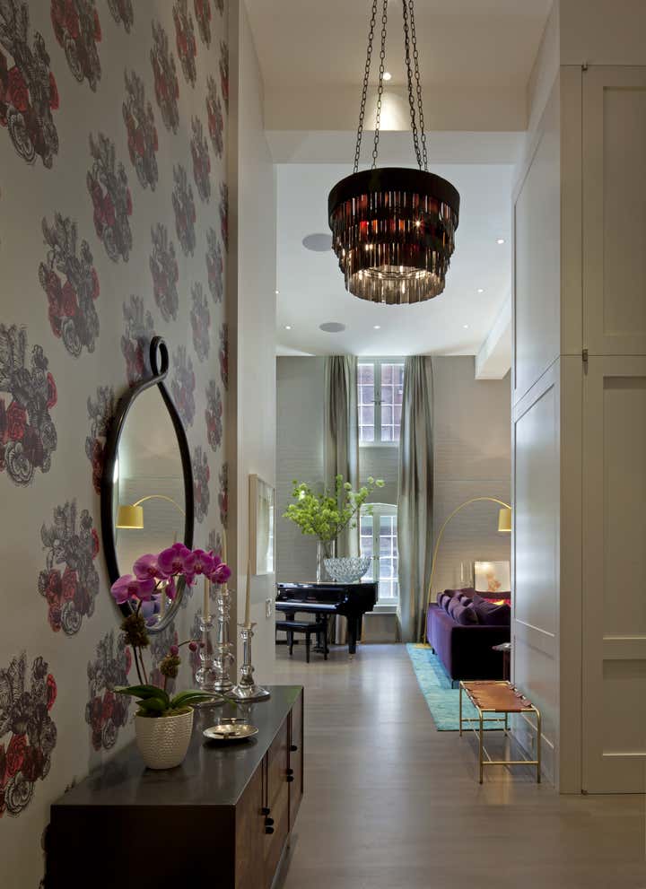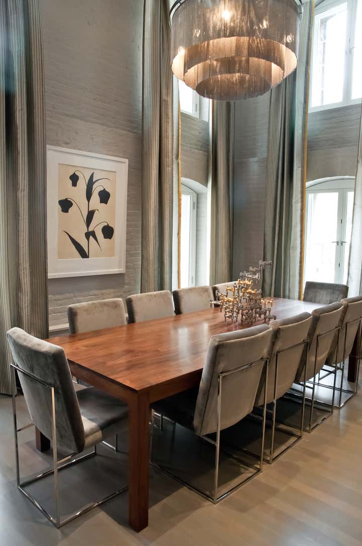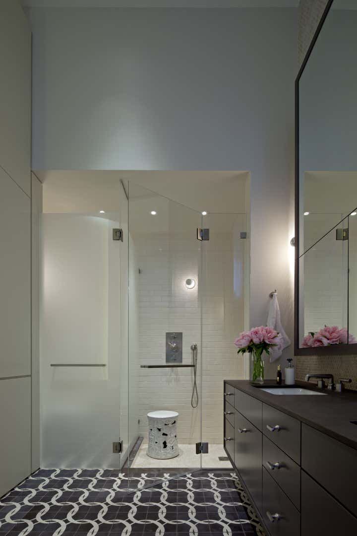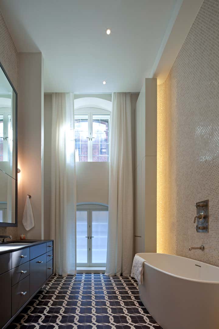 For this Tribeca apartment, the first action was to reclaim some classic loft elements that had been obscured. Exterior brick was exposed and the grand height was accentuated. A key component was a generously large kitchen for the chef owner. Additionally, the master bathroom was pulled from the small-scale interior of the apartment into the prime space with high ceilings. With small windows in the massive brick façade, natural light was limited. New lighting throughout helps supplement the limited daytime sun while creating a warm inviting setting at night. 1853 Sugar Refining Warehouse, the warehouse-turned-Tribeca loft in NYC, has undergone extensive renovation in the past few years. Renovating the space was a difficult task because of the building’s unique layout and landmark status. The interiors were designed by Steffani Aarons in close collaboration with our client. Architecture: DHD Interior Design: Steffani Aarons Photography by: Andrea Brizzi http://www.andreabrizzi.com Photography by: Brooke McGowan http://www.brookemcgowan.com