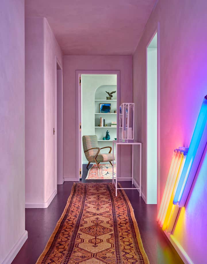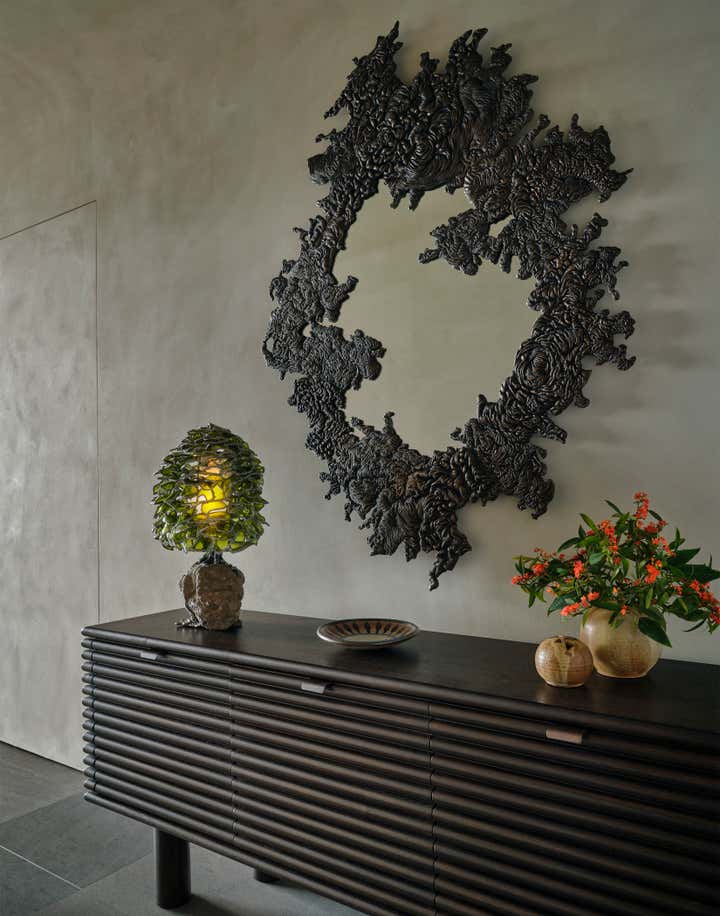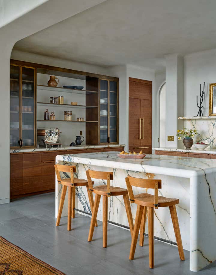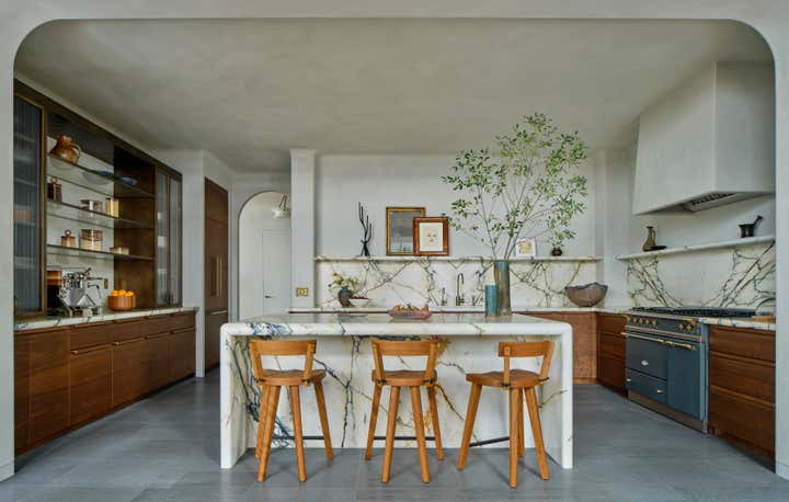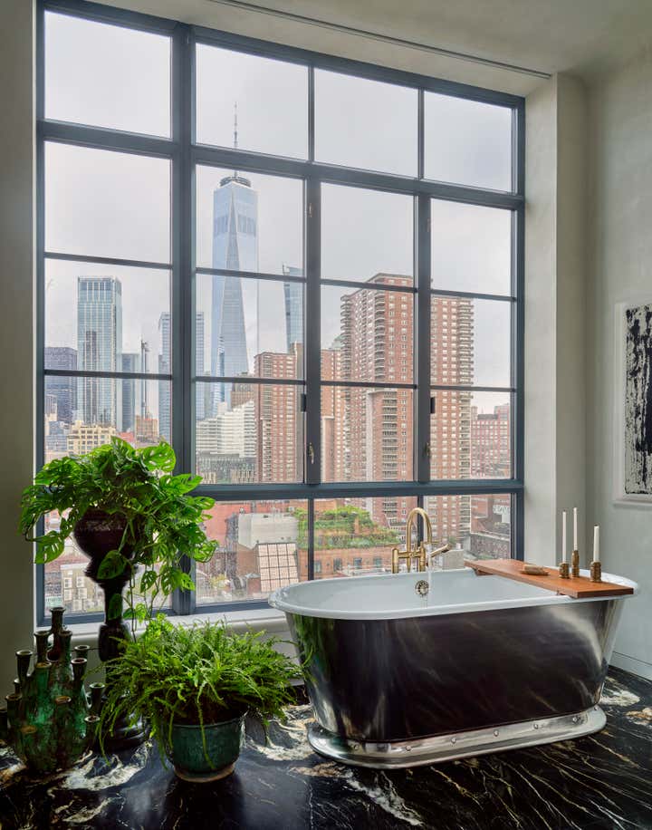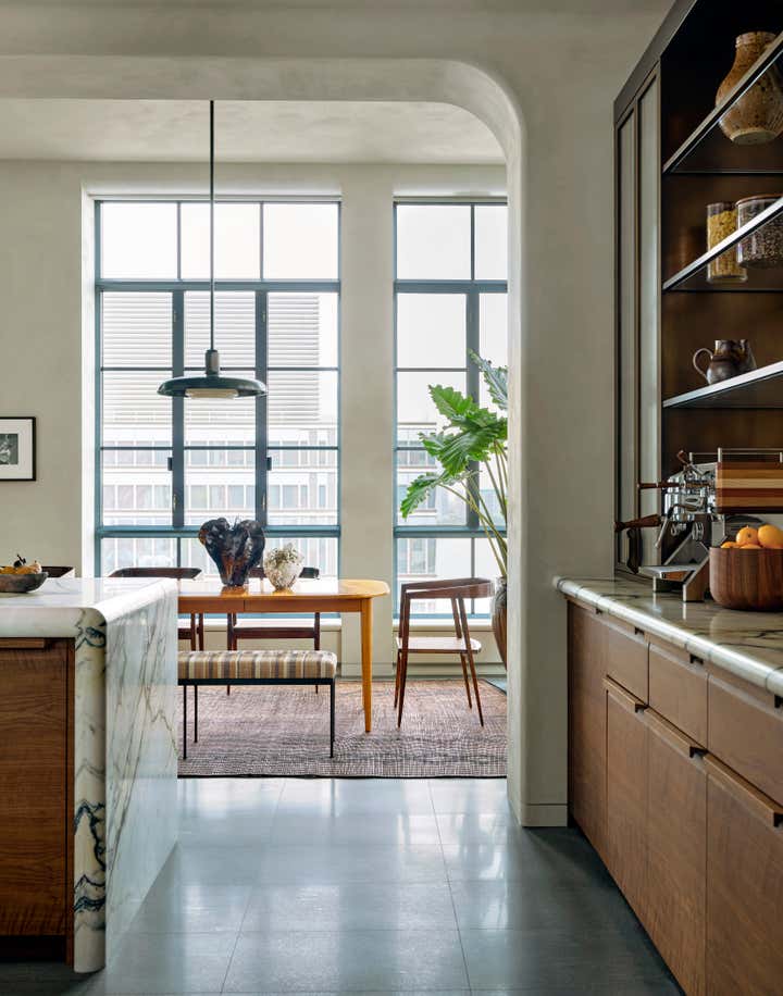 This art-filled penthouse loft, perched above the streets of Manhattan, offers breathtaking city views. The design team softened and enhanced the contemporary architecture by introducing curved details, plastered walls and ceilings, and layered, globally-acquired textiles. The result is a space where architecture, art, and furnishings seamlessly converge, crafting a truly harmonious environment.