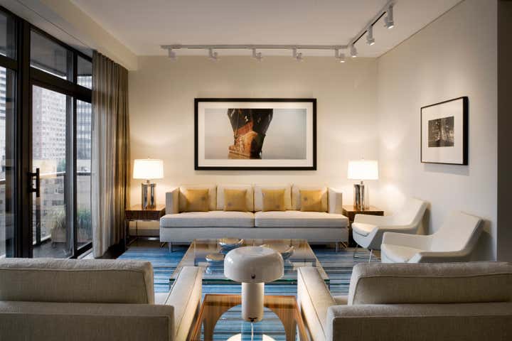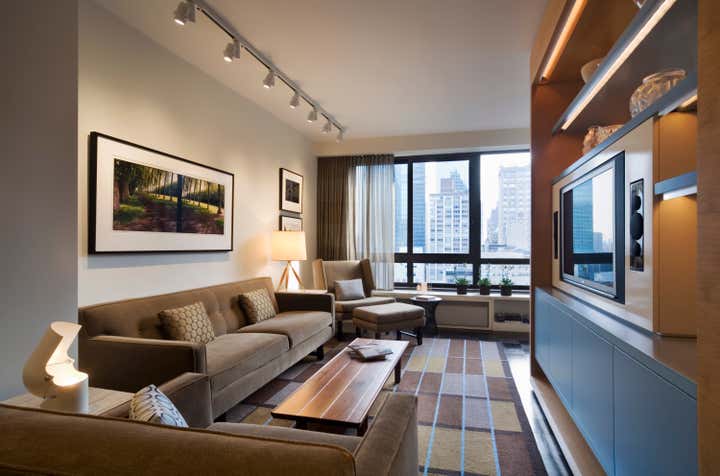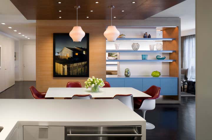 This renovation of a 1980s-style high-rise apartment reinterprets a "Case Study House" life style for apartment living in New York City today, introducing an open plan, a functional reorganization of living spaces to match the clients’ lifestyle, and an integration of spectacular UN and city views.
