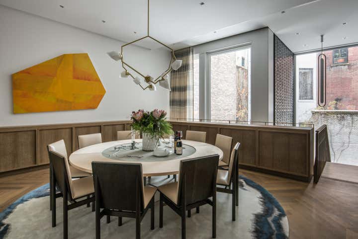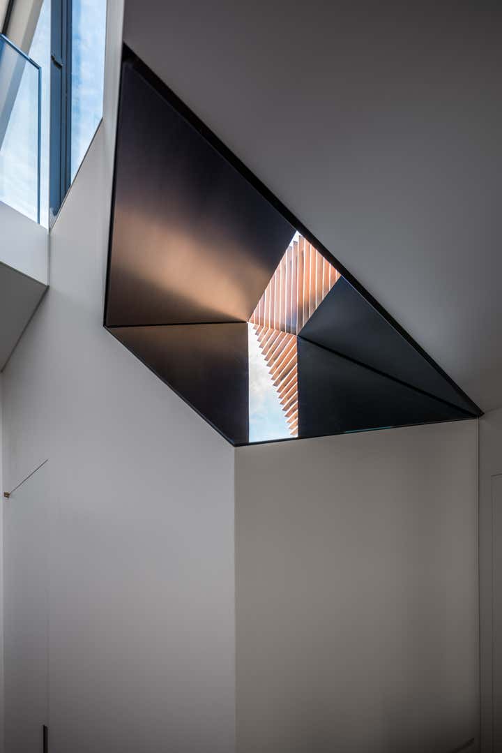 Conceived as both a family home and a setting for large-scale entertaining and events, the house is organized around multi-directional and multi-level circulation. Opportunities for light, air, and circulation to enliven the interior and exterior on the highly constrained site were developed through generous vertical openings and glazed double height spaces that emphasize the building’s grand proportions and create visual and spatial connections between floors.