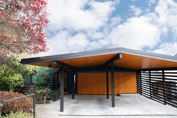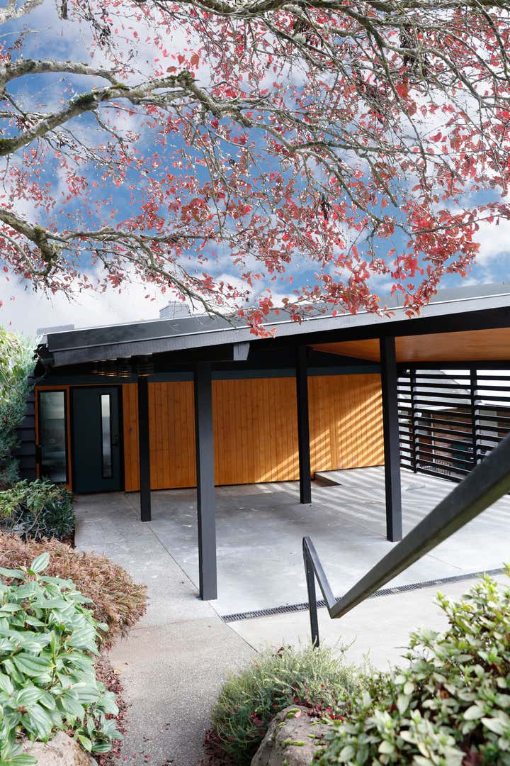 With views of the Cascades and Mount Rainier, this 360-degree residential design project was a practice in stripping and refurbishing for optimal livability. The existing Seattle home was built in the late 1950s, with mid-century modern bones, but layers of remodels had hidden its original essence. The first step was to remove dropped ceilings and circuitous walls to reveal the structure underneath, and streamline the flow from room to room. The new layout allowed for a large media area with new, expansive ribbon windows facing onto the scenery below.