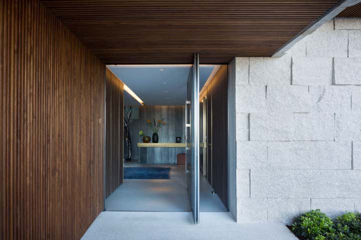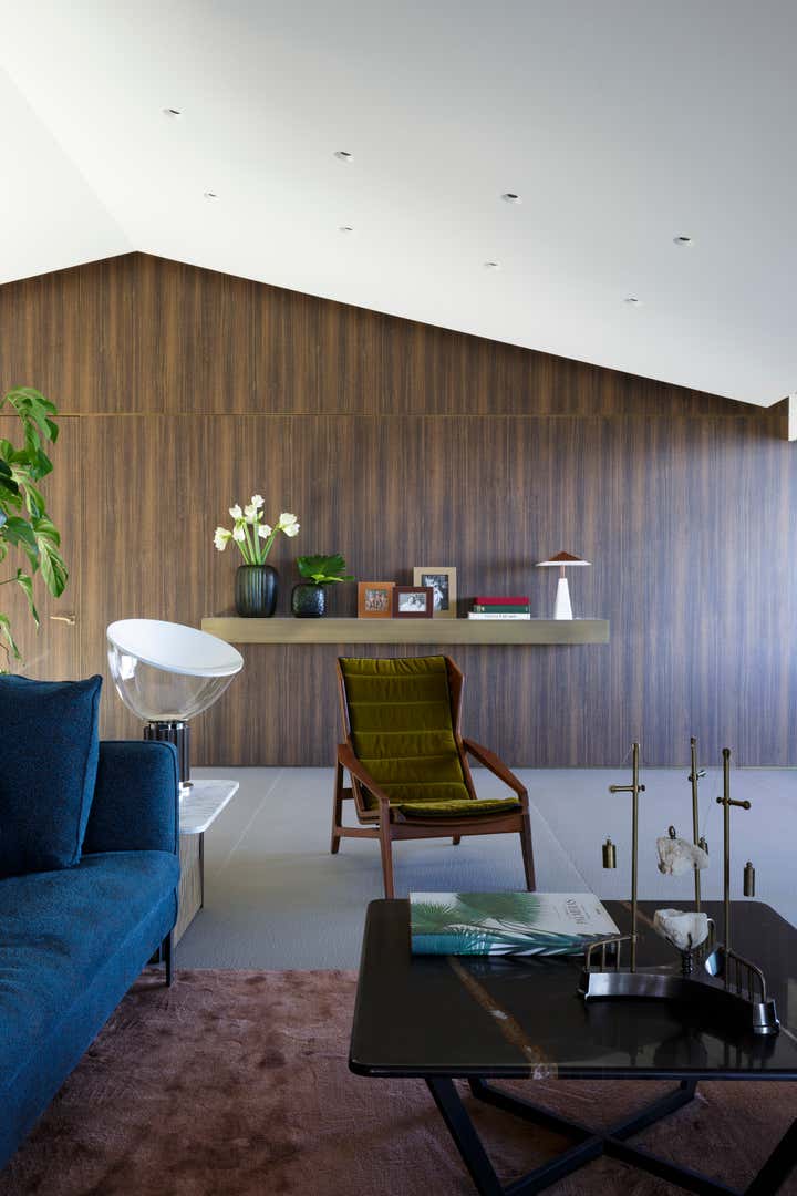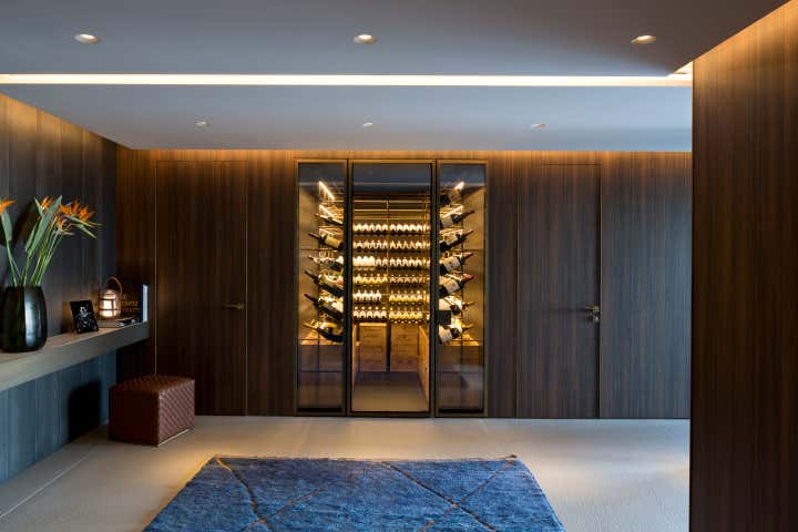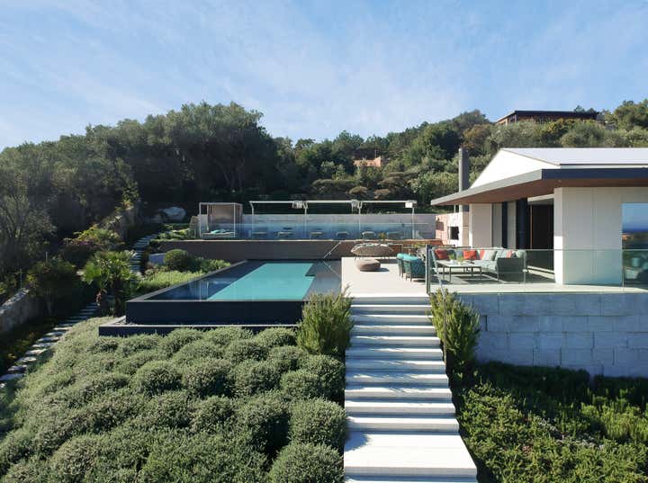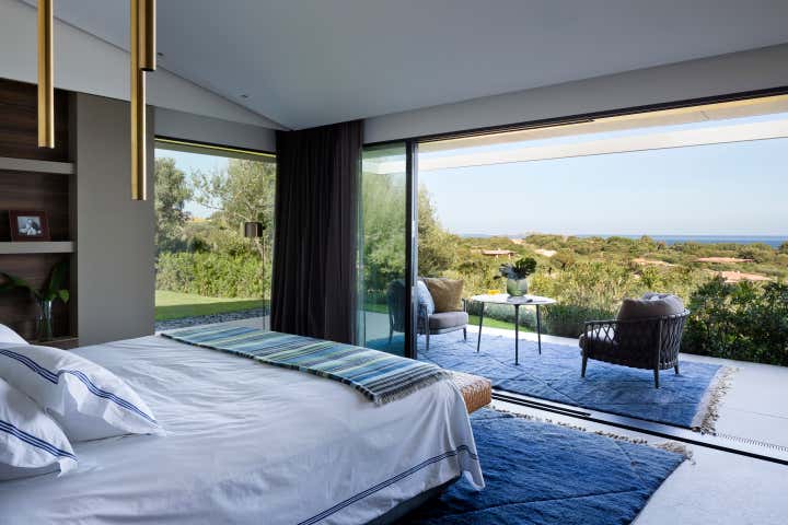 Winner of the World Architecture News Award 2019 as House of the Year, Villa Emma is a summer retreat located in Costa Smeralda, one of the most prestigious holiday spots. Villa Emma melts the rigour of "Stazzi", the local rural buildings, with the modern house principles of open floor plans and connection between outdoor and indoor spaces. This house plays poetically with the sky and the land. The hand-cut granite stones on the ground floor plunge into the natural landscape while the sliding glass doors on the first floor reflect the sky and when completely open tranform the house into a terrace. Continuity has been emphasized using the same stone slabs both for the interior and exterior flooring. The cross-shaped metallic pillars are an homage to the elegant proportions of Miesian architecture. Openness was sought in all aspects of the design, to the external and nature and internally, amongst the living spaces for the family by creating visual connections. Design of the house focused also on the environment and the building’s ecological footprints have been reduced by creating a passive house. By combining natural light, architectural lighting systems and decorative lamps we gave personality to the different spaces of the house, enhancing them and making them comfortable according to their intended use. Interior decor is characterized by pure lines emphasized by a refined use of materials. The color palette, mostly dark but warm, of the vertical elements emphasizes the pitched roof. Mario Mazzer Architects captured the expressive potential of materials by creating new finishings for different spaces and uses. Calamine iron with wax finish, smoked oak, hand-cut granite, full-grain leather and brushed brass are characterized by the meticulous attention to details and the manual process to accentuate the elegance of craftmanship.