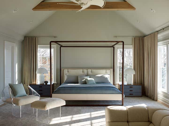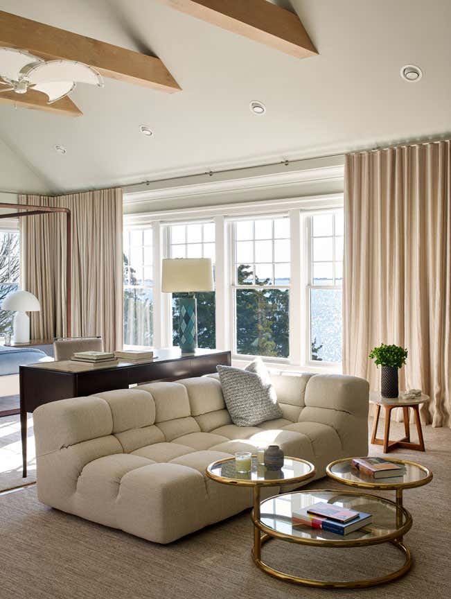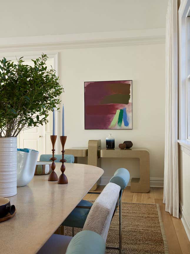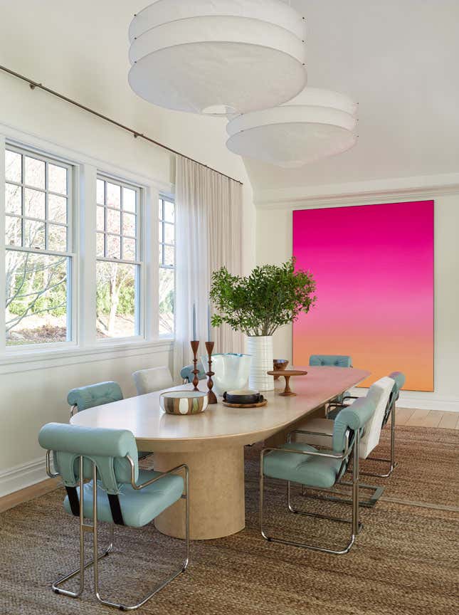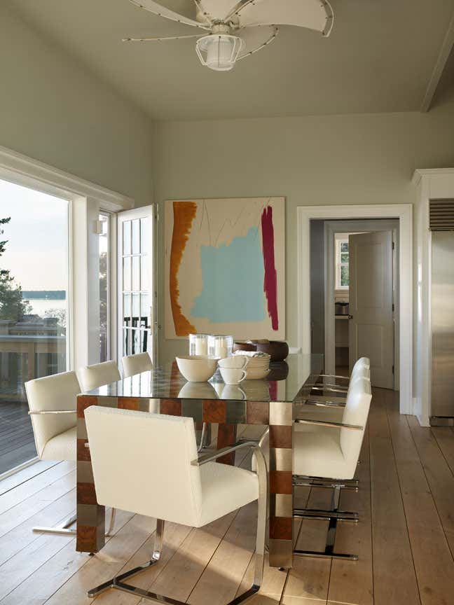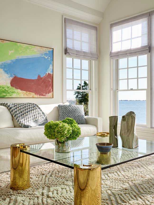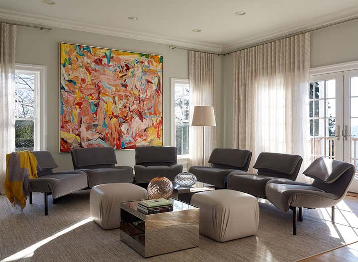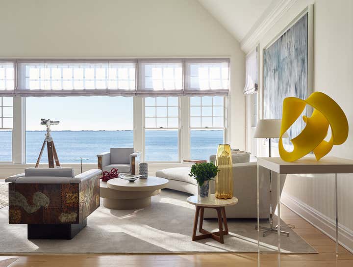 Expansive Shinnecock Bay views are the focal point for our Southampton house design. In classic summer style, our deadline was expedited for a Memorial Day installation. The architectural renovation of the 6,500 square foot main house was simplified in favor of a timely cosmetic design. We streamlined existing moldings and trims, created a soft paint color palette and gauzy window treatments, and artfully furnished the interior and exterior. Our curation of a new art collection takes center stage, and we sourced art from Berlin to San Francisco and everywhere in between. The livable aesthetic provides a comfortable weekend home for our returning client, with a layered yet modern richness unexpected at the beach. We brought texture through fabrics and selected vintage furnishings with sculptural silhouettes. The art works paired with the client’s sense of adventure enabled us to create a uniquely flavored Hamptons house.