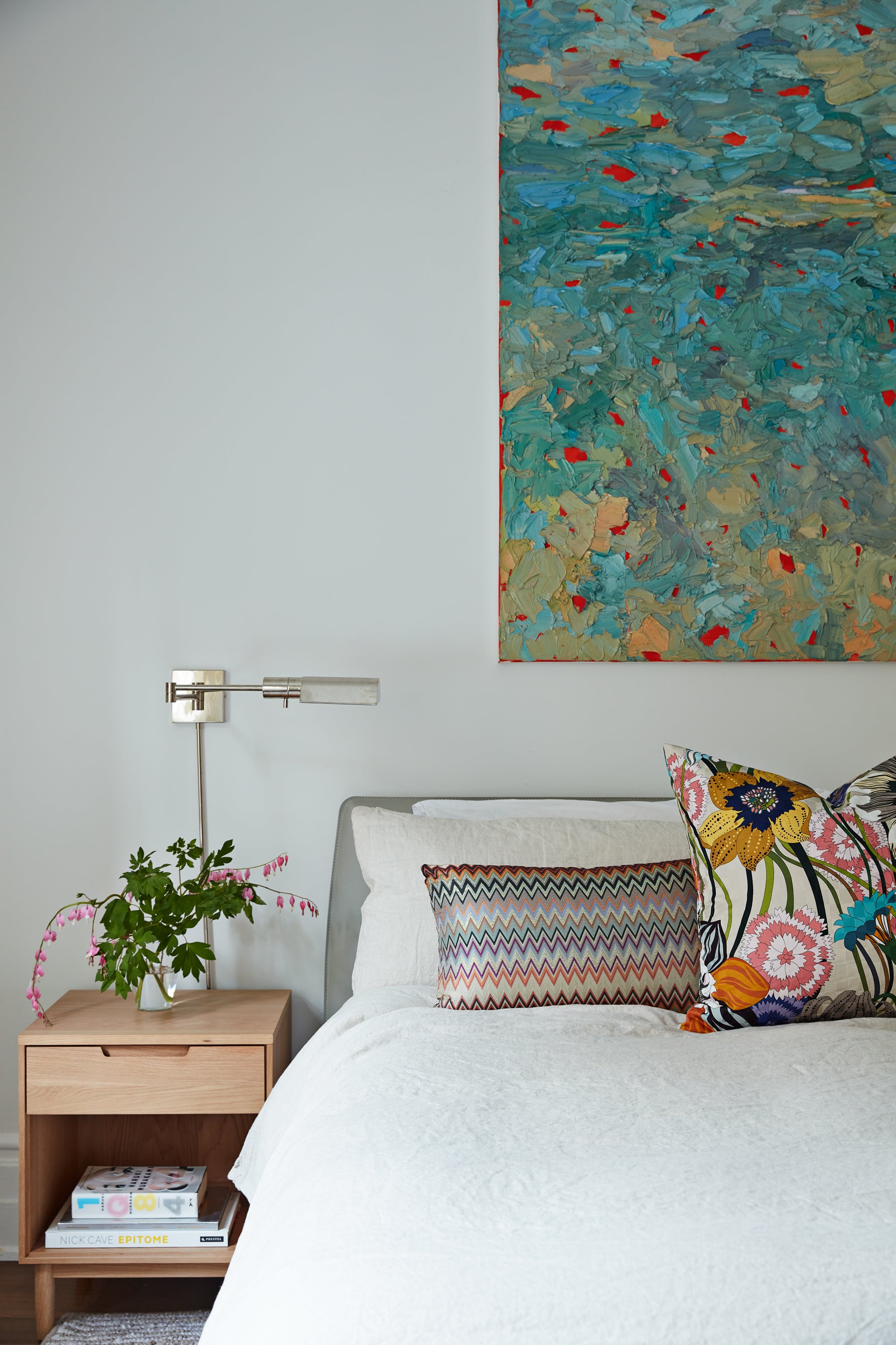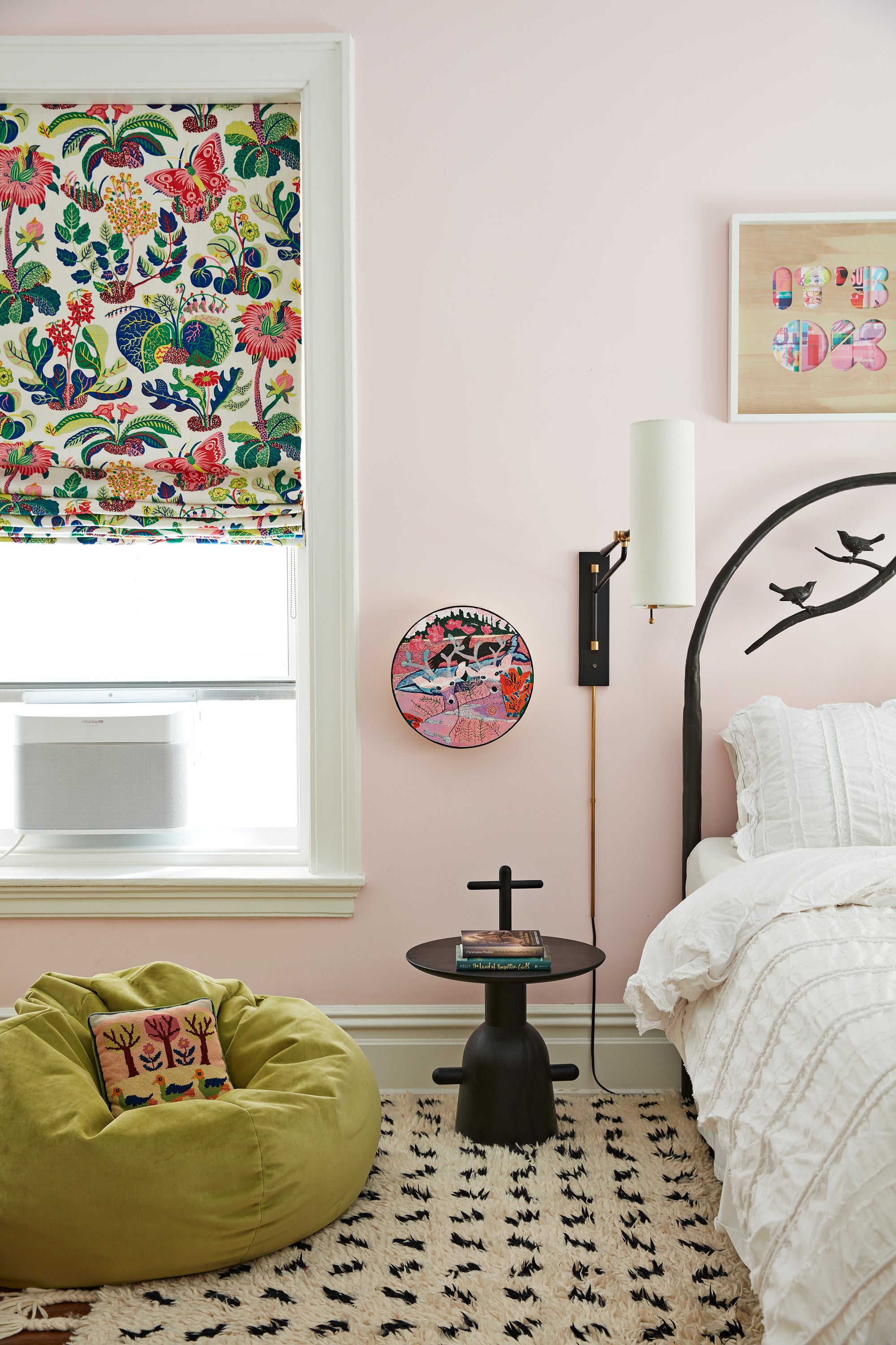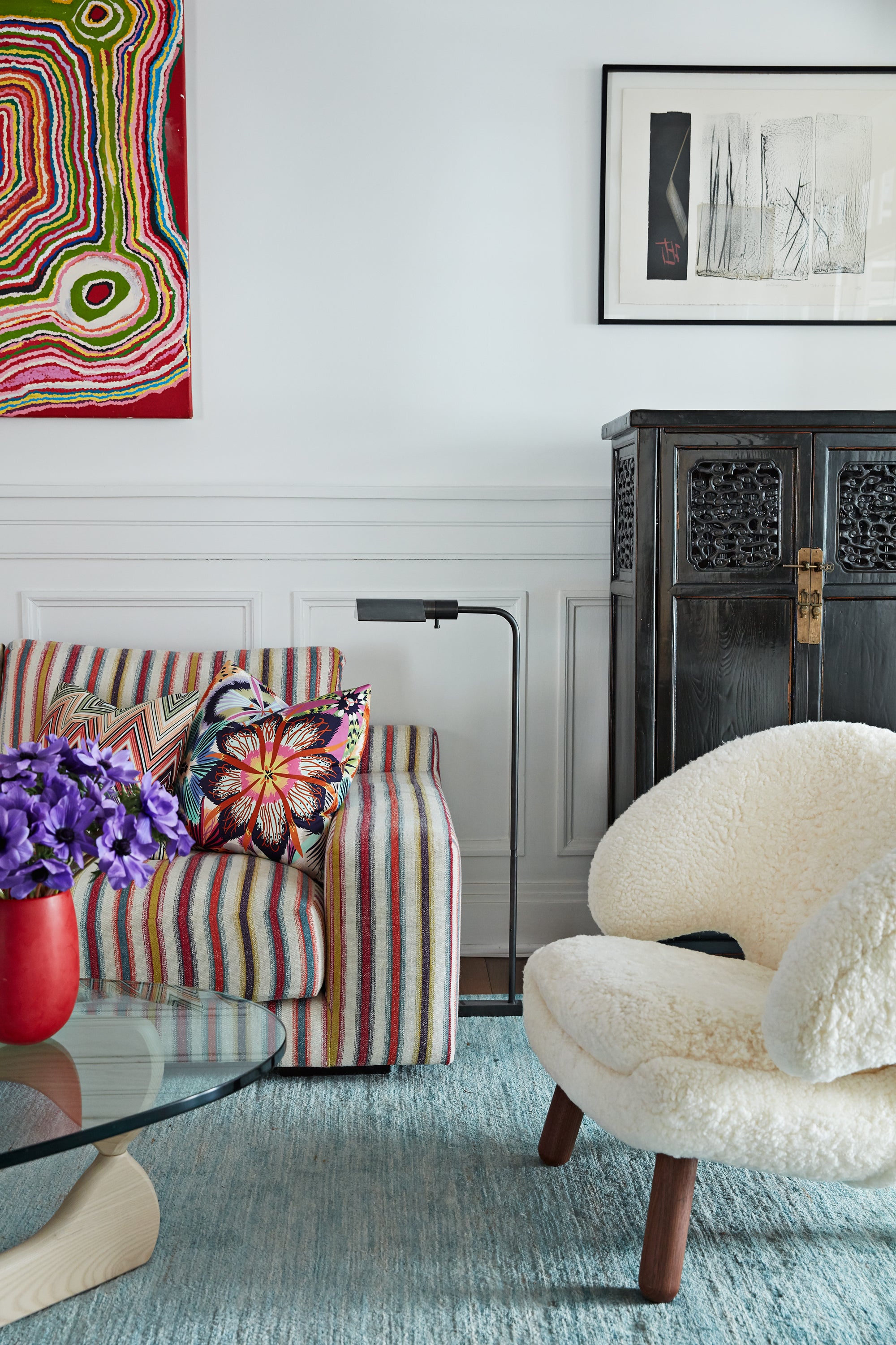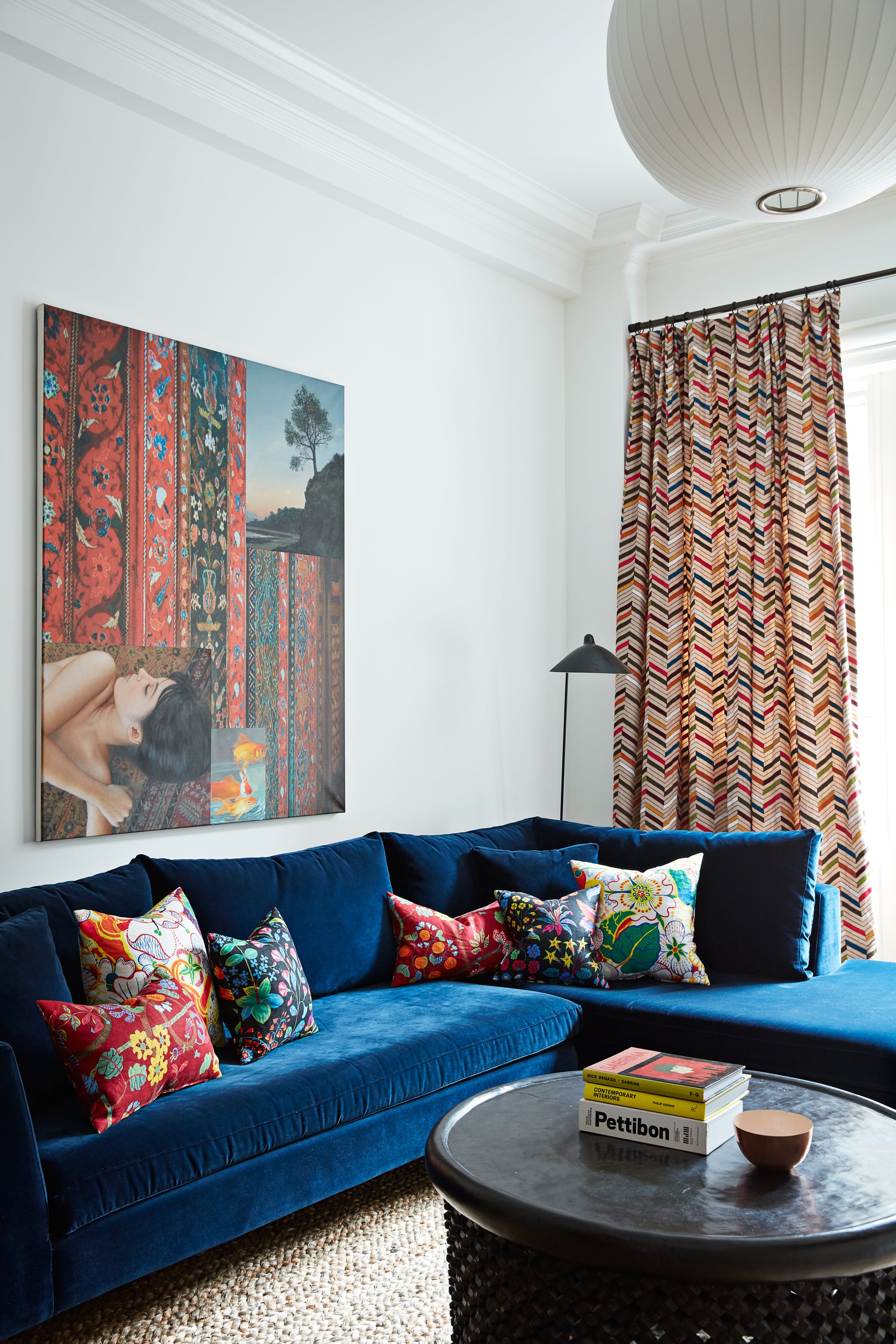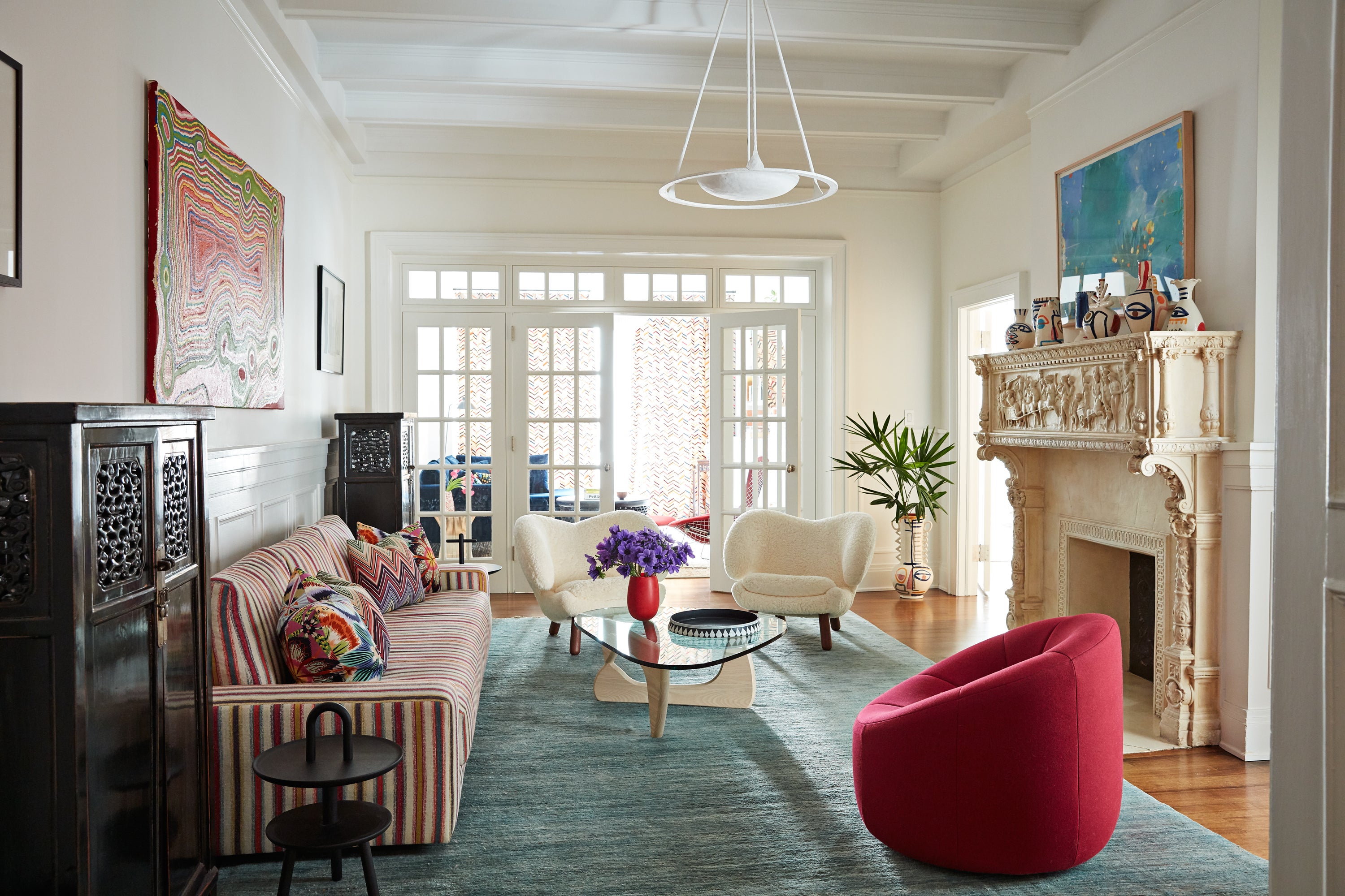 A modern family home with pop furniture, colors and art.