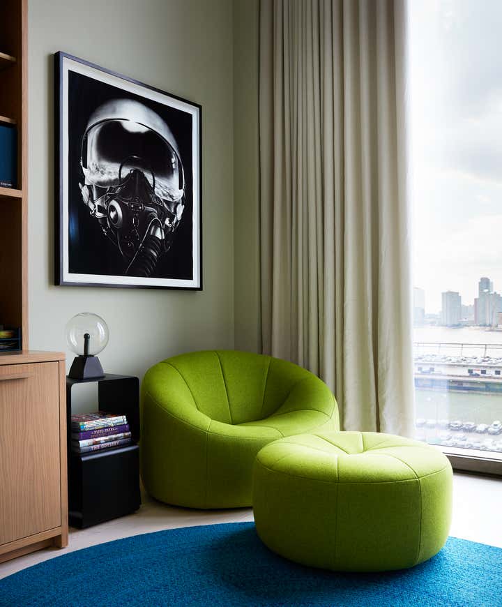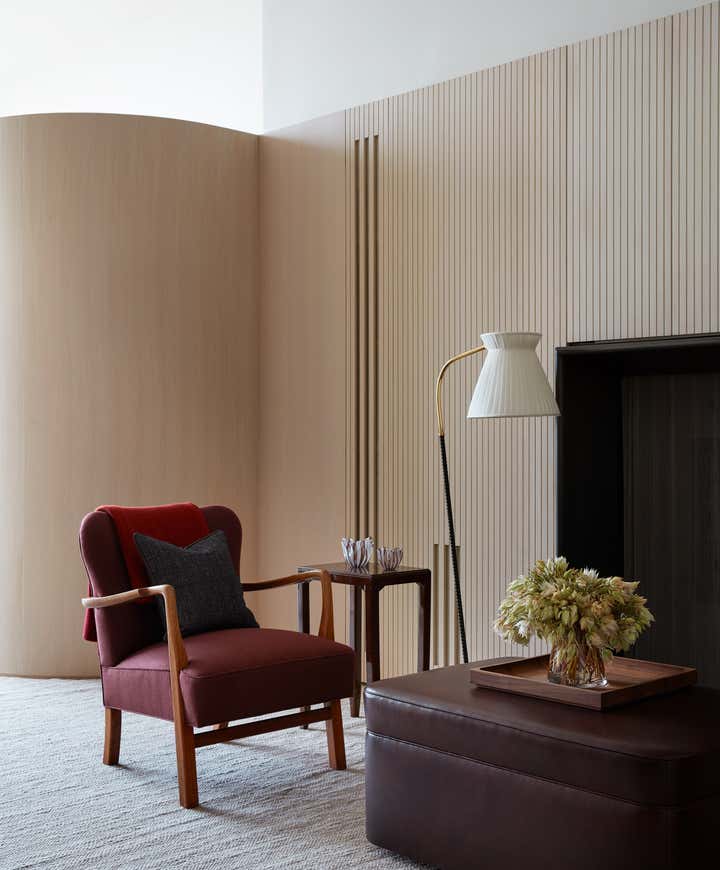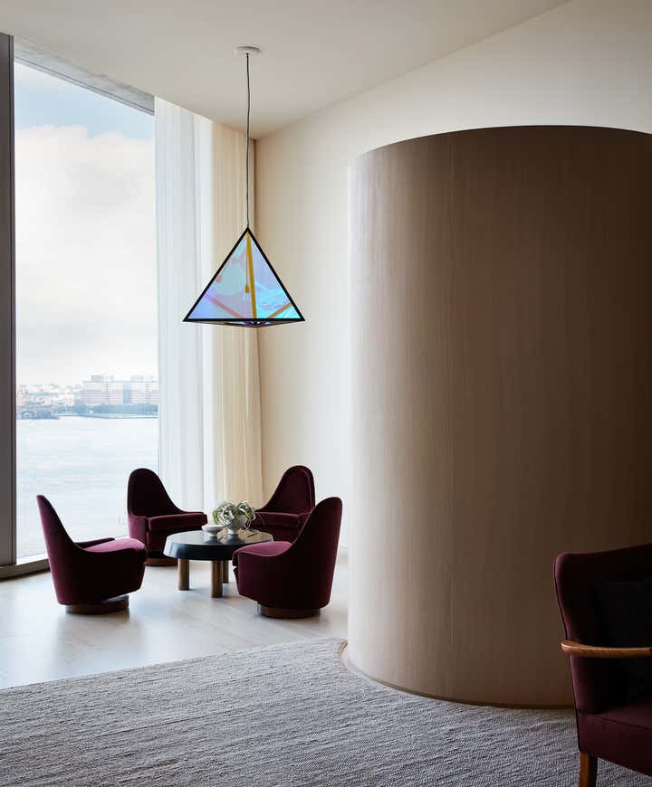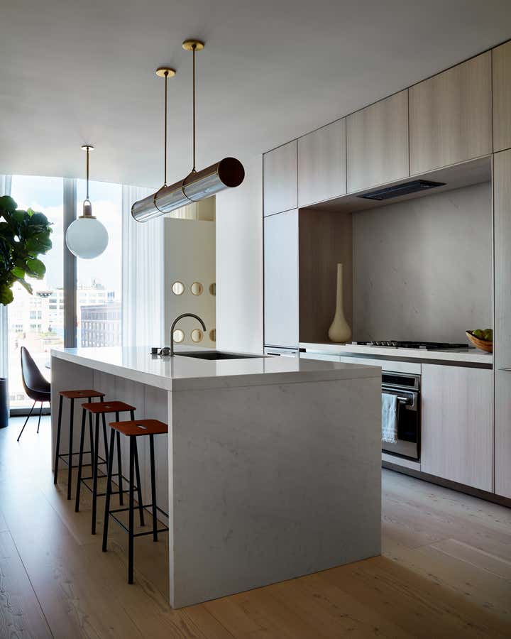 Contemporary furnished apartment in a building designed by Herzog de Meuron. Project was featured in Departures Magazine, May 2020.