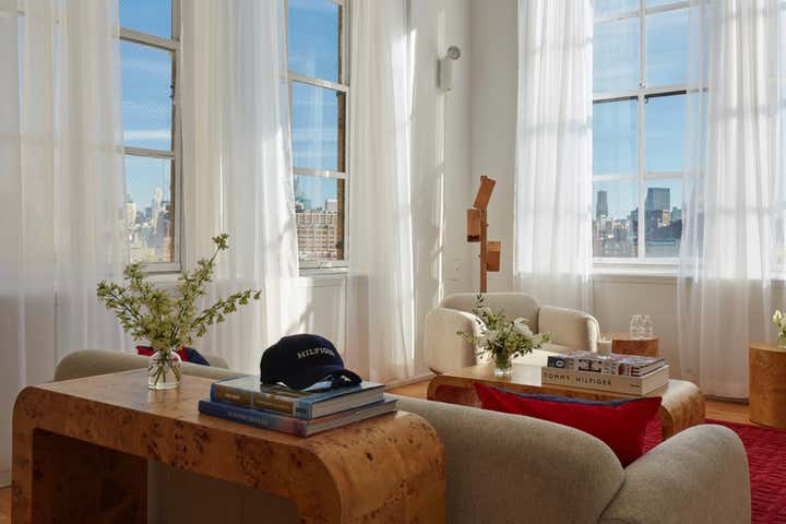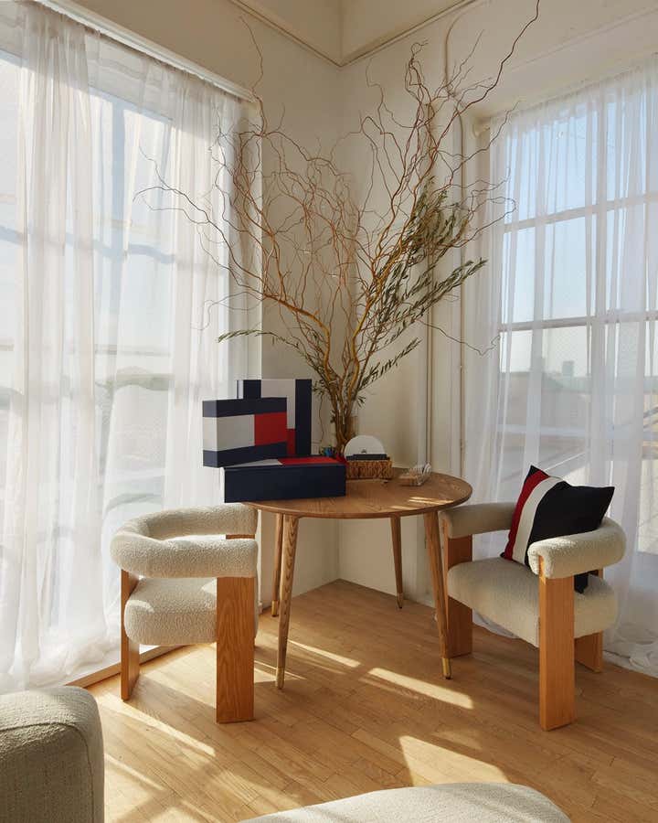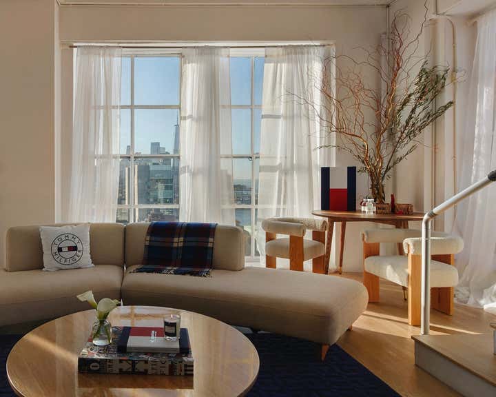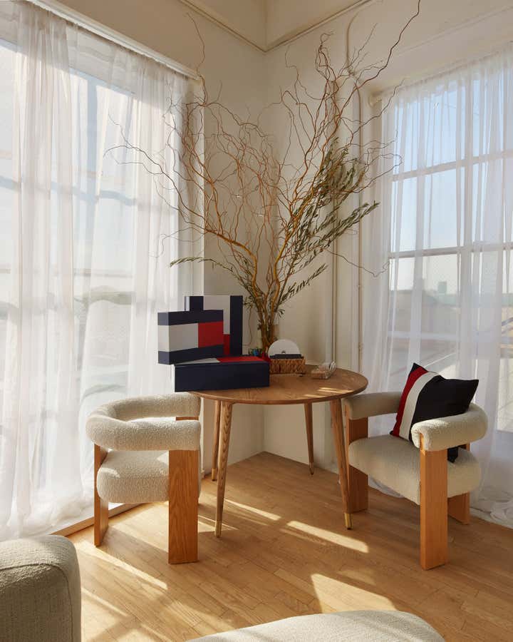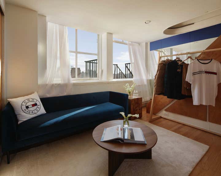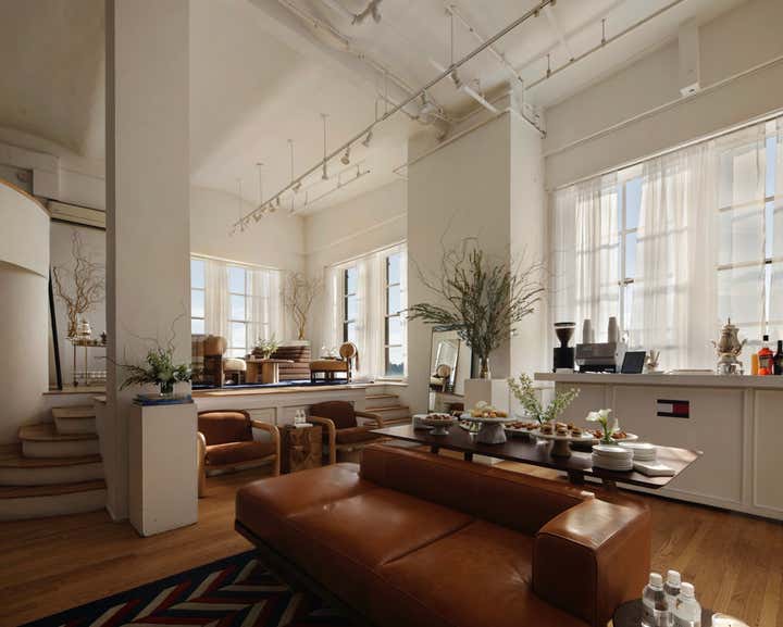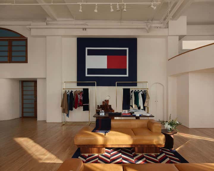 With a mandate to create a visually intoxicating space where guests would have their phone out the entire time, we focused on sensuous curves, warm neutrals and pops of Tommy’s trademark Americana colors.