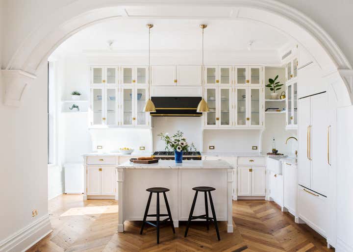 To celebrate the heritage of a landmarked 1800’s Brooklyn schoolhouse, we transformed a utilitarian artist loft into a glamorous home, rich with period-appropriate detail. Inspired by the building’s character, we designed custom Victorian millwork and tracked down the original tin ceiling tiles.