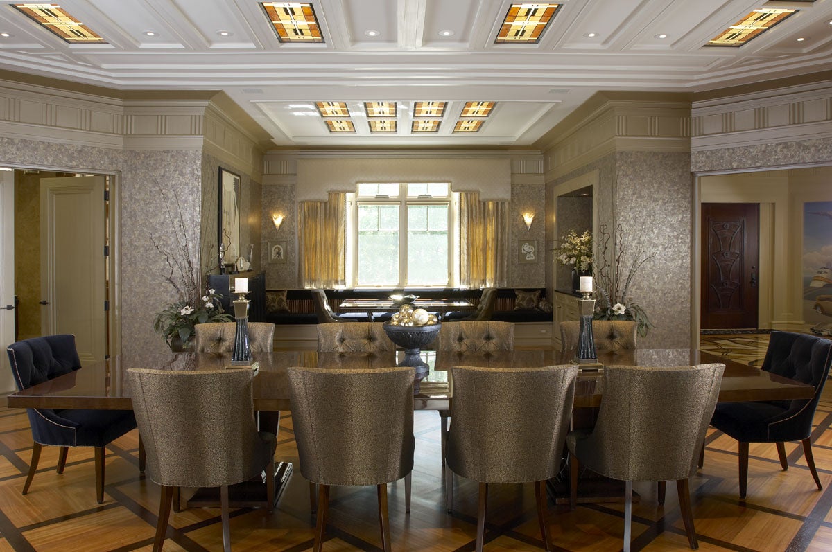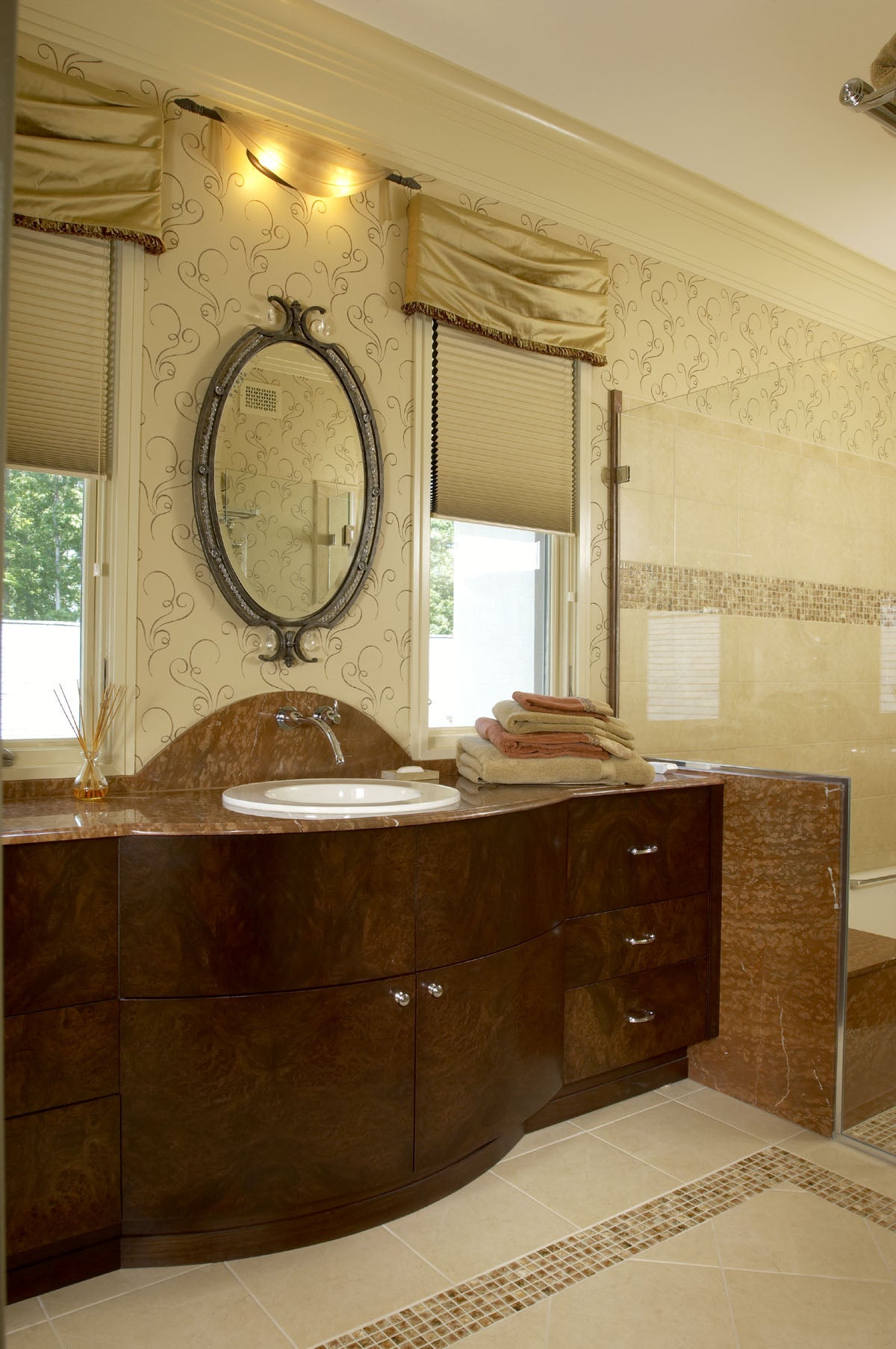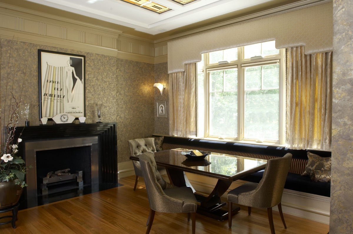 This is a magnificent home that was demolished and rebuilt, save for the basement and living room chimney. The homeowners in the DC area were looking to purchase a new home, but couldn t find property in the area as nice as what they had, so they decided to remain and remodel. Their passion is Art Deco and their vast art collection was a driving force in the design. Working with a local architect and construction firm, we left no detail untouched. The three year project was a labor of love.