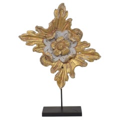 Beautiful handcarved giltwood baroque ornament that once adorned a chapel or a church. Italy, circa 1750. Weathered condition. Measurement includes the wooden base.