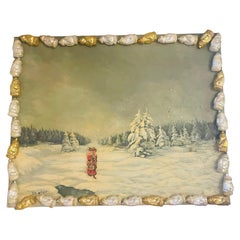 Vintage European Jumbo Blown Glass Christmas Ball Purple Winter Landscape. Made in an old European tradition of glass blowing, mercury glass and handpainted. Great holiday decor and ...