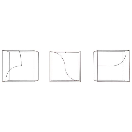 Anne Rose Regenboog lives in Den Haag. She studied, after her goldsmith education, applied to fine arts at the Rietveld Academie in Amsterdam. Her sources of inspiration are the classic elementary forms. Her works are autonomous; they are the result of a study in material and shapes. Initially, she presented her ideas in jewelry however after several years, the work grew in size, and it became clear that paintings and metalwork in a larger size are good practice were to ideas, which proved unsuitable for jewelry, nevertheless. The installation made of cubes is serial work. It started with an elementary module: open wire objects in the shape of cubes within which a diversity of characteristic configurations come to shape. This is how a three-dimensional game is created with lines, where the inner space is never locked in.
