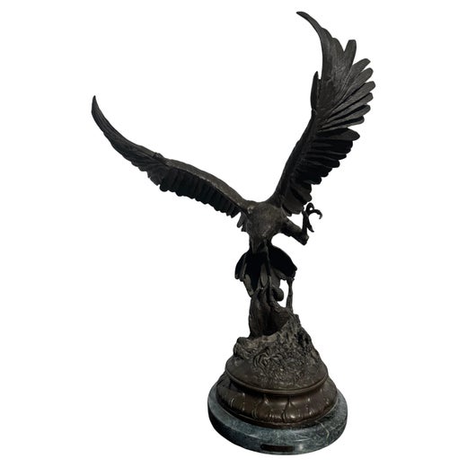Jules Moigniez was born in Senlis sur L'Oise, France in 1835 and died in Saint-Martin-du-Teire, France on May 29, 1894. The son of a metal gilder, Moigniez was a student of Paul Comolera. Moigniez debuted at the Exposition Universelle in 1855 with Pointer, Pheasant, Falcon and Weasel each in plaster. Moigniez contributed regularly to the Paris Salon from 1859–92 during which he exhibited over 30 sculptures including Pointer, Pheasant, Falcon and Weasel in bronze. Moigniez was awarded an honorable mention at the Salon and received a medal in London at the Great Exposition in 1862. Moigniez lived most of his life in Paris. During his career, Moigniez was widely popular in France, England and America. His bronzes were most decorative, particularly those of game birds. Moigniez also sculpted dogs, farm animals and equestrian groups. Moigniez's dogs reflected the "naturalism" style of Pierre Jules Mene. Moigniez’s bird sculptures were reminiscent of paintings by deHondecoeter, Casteels and Snyders. Moigniez’s sculptures of birds reflect dynamic movement as if captured through a high-speed photographic portrait. Moigniez bronzes were edited, cast, by the foundry his father opened in 1857. A wide variety of patinations, including silver plate, golden bronze and gilding were unique to these lifetime casts. After Moigniez’s death, most of his bronzes were cast by A. Gouge, who also edited most of Comolera's sculptures.
