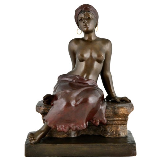 Art Nouveau Orientalist Sculpture seated woman by Emmanuel Villanis France 1900.