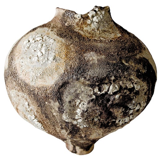 One-of-a-kind Raku-fired vase. Imperfectly round. Made in our Brooklyn studio then fired in a New Jersey back yard,