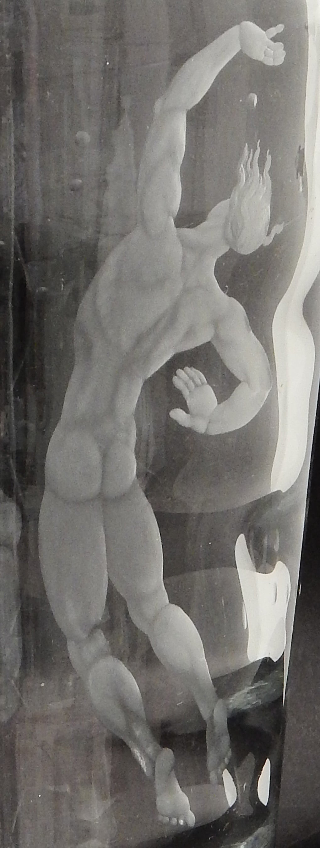 View All"Two Nude Divers", Rare, Large Engraved Glass Art Deco Vase w/ Male Figures