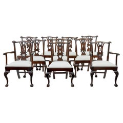 Spectacular Set of 12 Carved Mahogany English Chippendale Dining Chairs