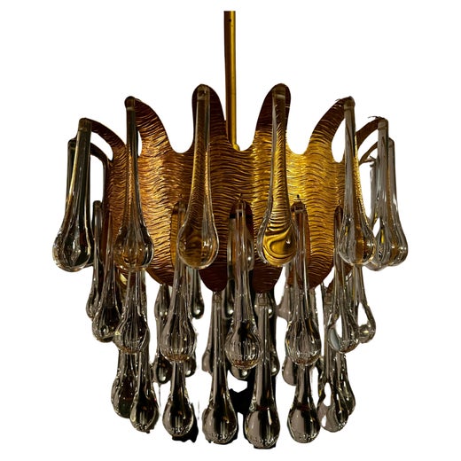 very rare palwa CHANDELIER 1970s crystal glass and gilted brass grapes and leave