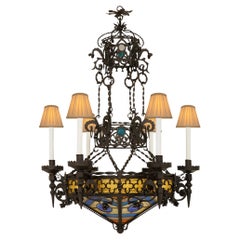 1960s Italian Gothic Revival Vintage Stained Glass Lighting