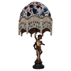 19thc Art Nouveau Large Bronze Sculptural Floor/ Table Lamp by Gustave Gurshner