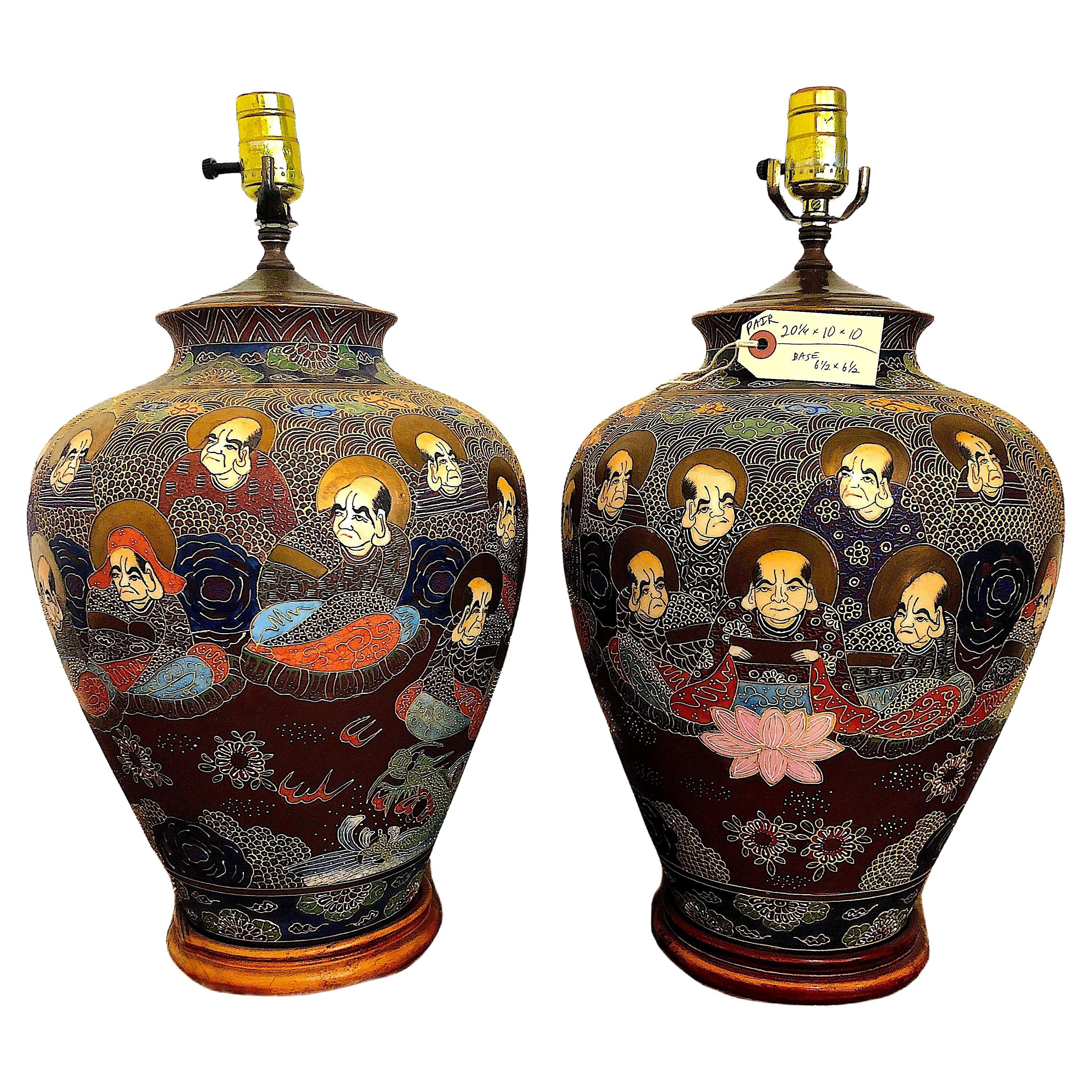 20th Century Japanese Chinoiserie Hand-Painted Lighting