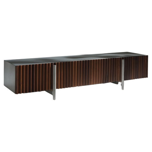 From the first piece of bent metal, Umberto Bellardi Ricci experiments with shapes and reflections to capture and refract light as if it were coming from the curves of a spiral while the light source remains embedded in the initial fold. Designed for Tacchini...