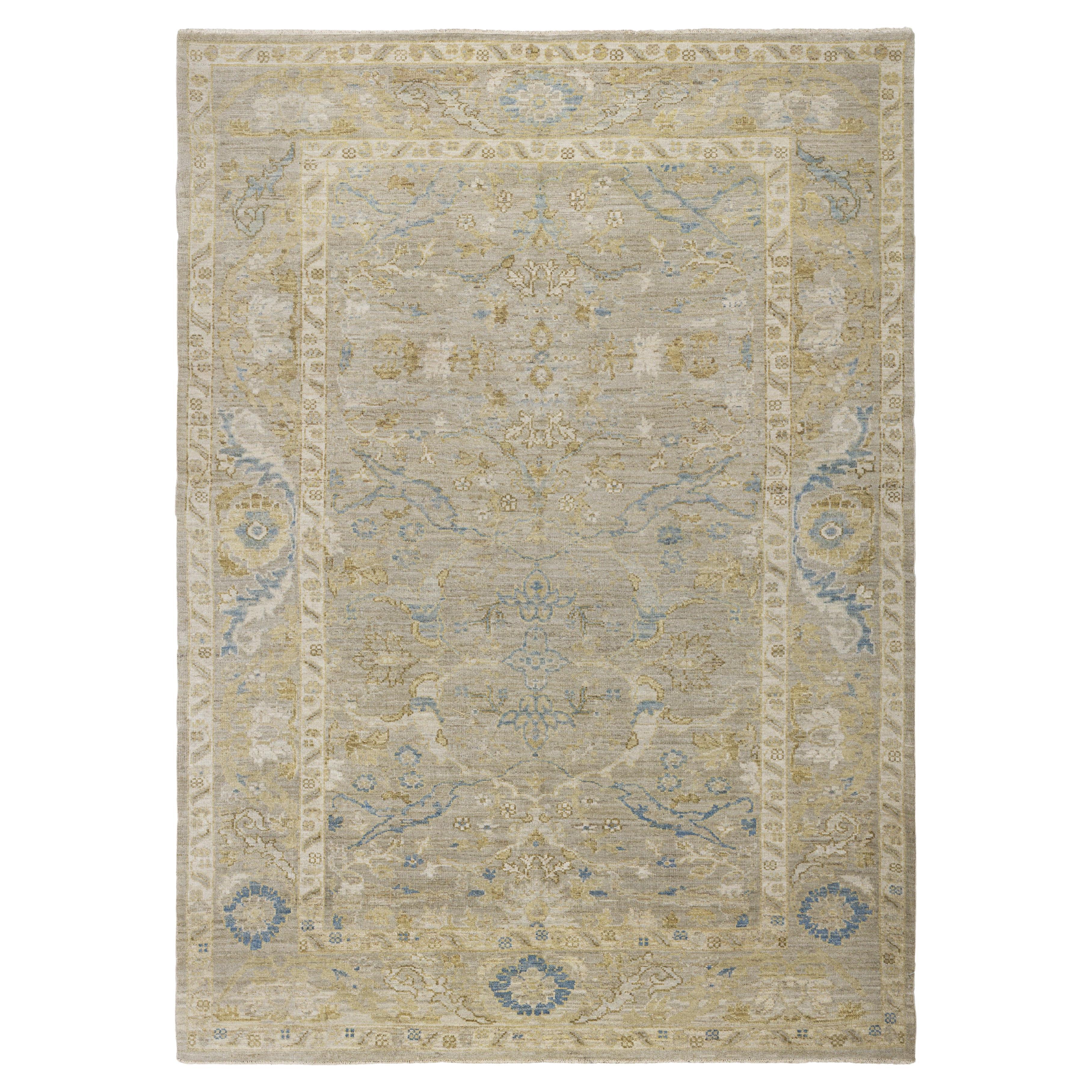 Modern Blue Sultanabad Handmade Floral Overisize Wool Rug