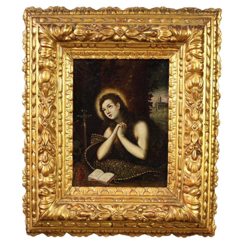 17th Century Oil on Copper Italian Antique Painting Penitent Magdalene, 1640