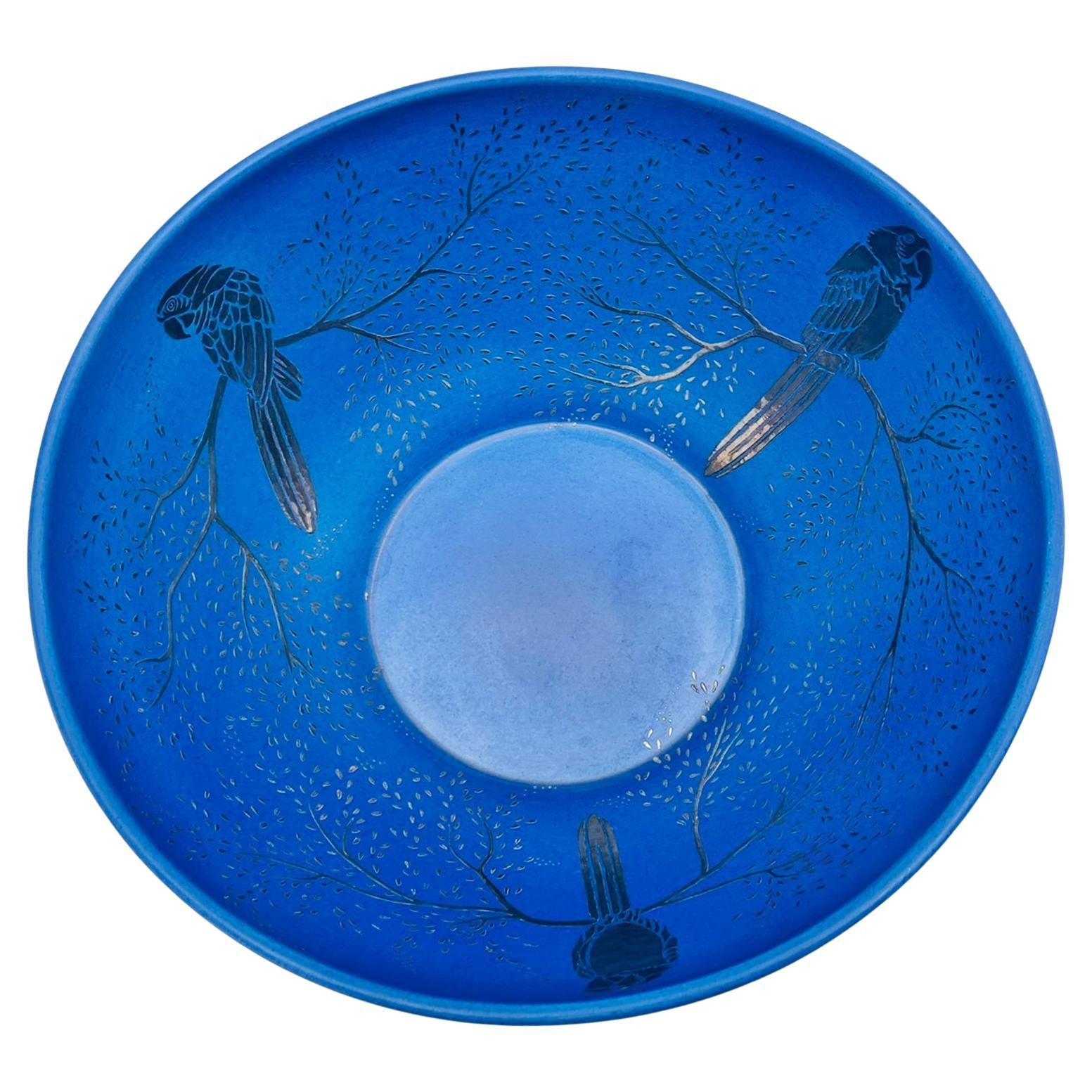 David Eldreth Stoneware Crock Vessel Cobalt Blue Bird, Folk Art Pottery
