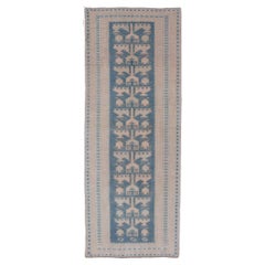 Blue Afghan Angora Oushak with All Over Leaf Design, Vegetable Dyes, Organic Wool, Hand Knotted, Wide Runner Oriental Rug