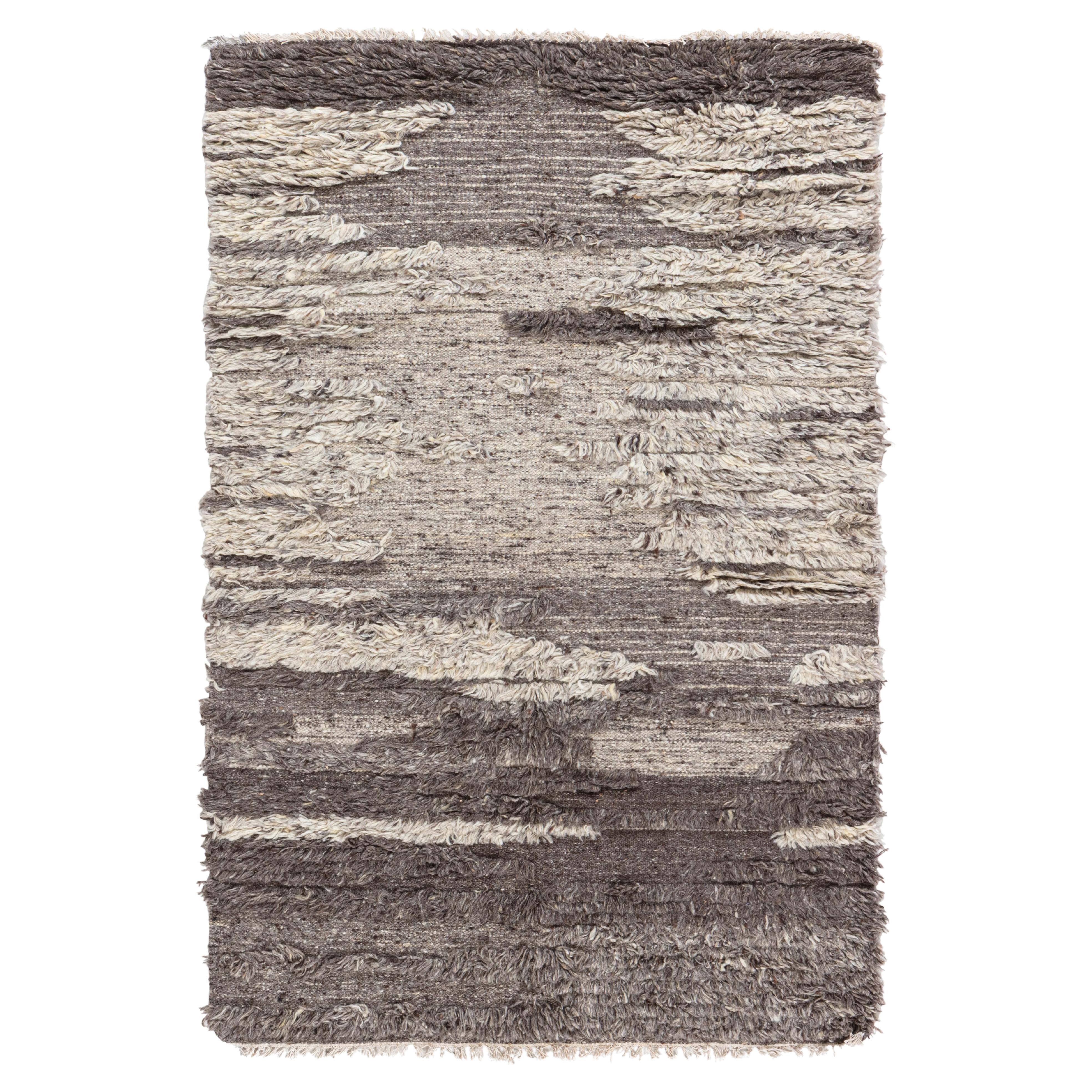 A hand knotted contemporary tulu rug made of natural un-dyed, hand-spun sheep wool.