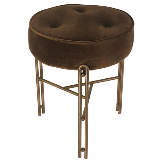 The "Linha" upholstered stool in "old gold" finish and dark brown velvet.
