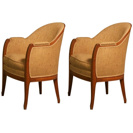 Leon Jallot Pair of Sculpted Pearwood Armchairs