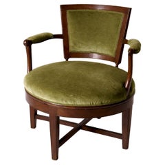 Louis XV bergère chairs were deeper and broader than other chairs of the period, while versions that were made during the Louis XVI period — which is characterized by furniture designed in reaction to the florid stylings of the previous era — see the particular style of chair developed further, with the area between the elbow rests and the seat being upholstered with fabric. Over time, the bergère chair took on dramatically different forms, while maintaining the same basic features. Mid-century modern bergère chairs have a sleeker design with simple yet elegant features. Whatever your overall chosen furniture style, a bergère chair introduces a comfortable yet commanding presence to any space.