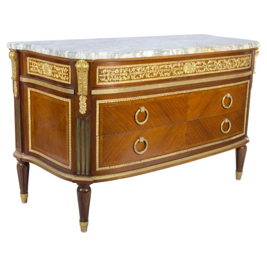 The pediment frieze with flower-filled entrelac gilt-bronze mounts. The cent...