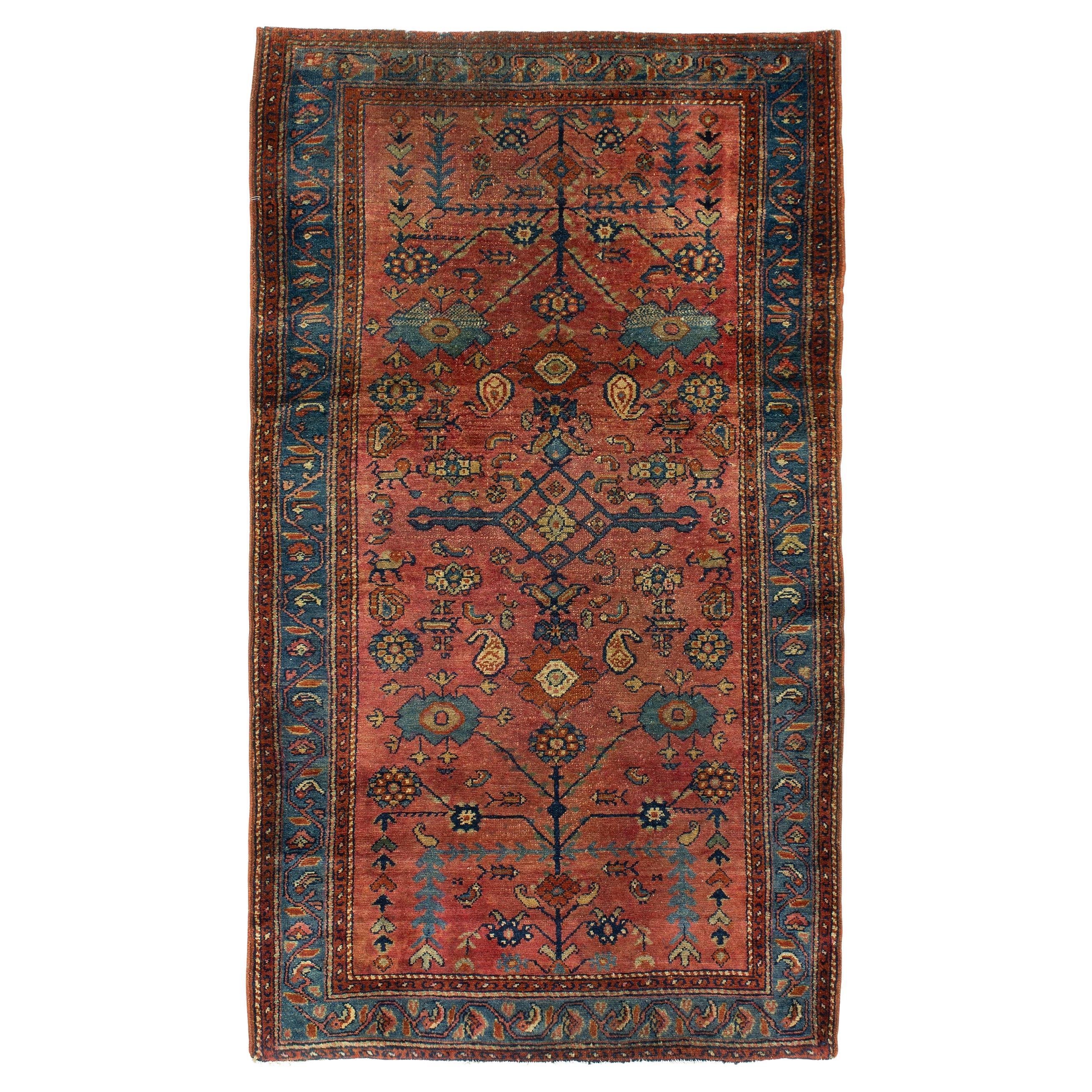 Large Antique Persian Lilihan Rug in Salmon, Blue, Green, Rust Colors